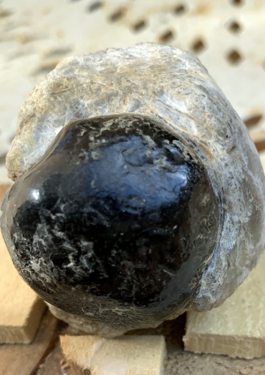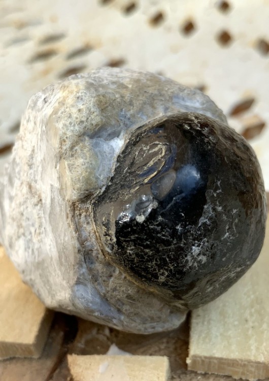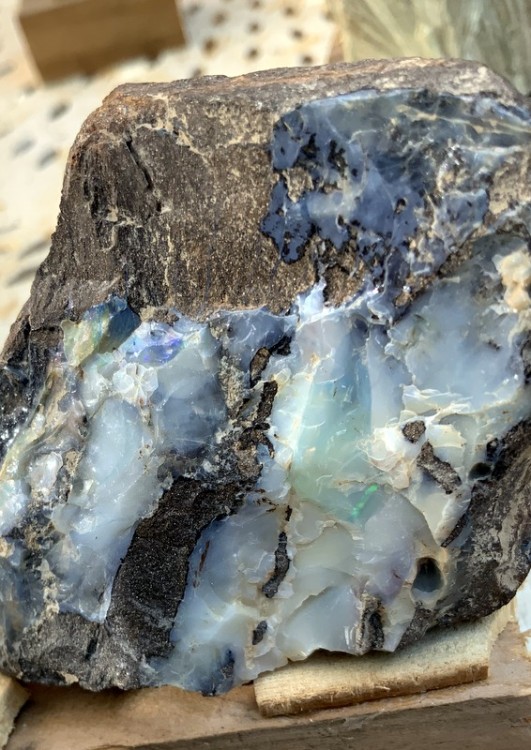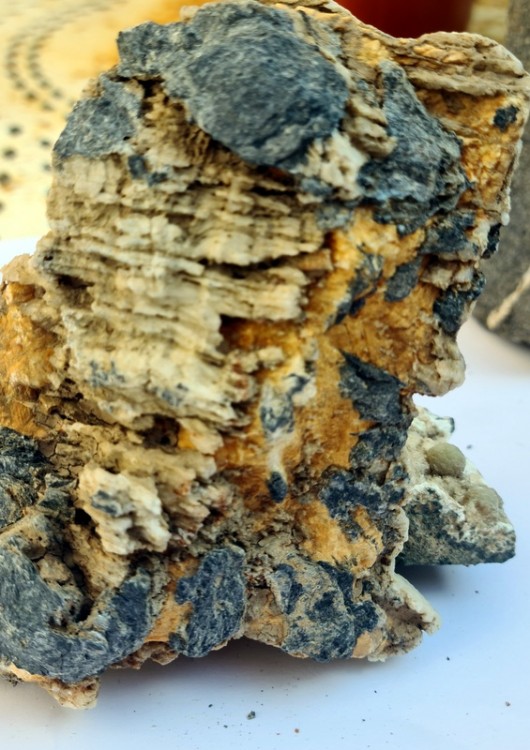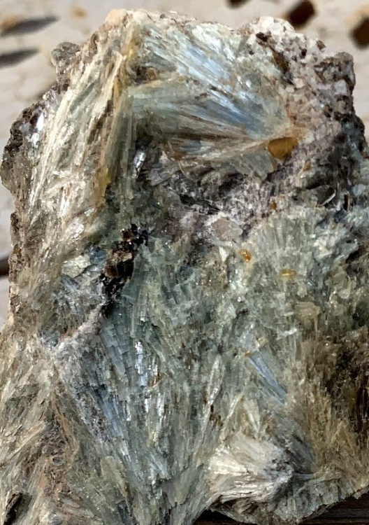 Pas odeur de bitume . par contre pour le disthène en feuilles certain . Par contre derrière on dirait du bois silicifié avec des trainées d'opale ; j'essayerais de prendre des photos je pense lundi