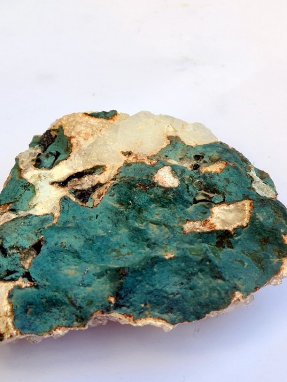 Pour la première était entière mais suite inondation de 2010 , elle c'est cassé en plusieurs morceaux , possible d'être collé mais laissé tel quel . DOMMAGE (3 photos) Pour la seconde , je pense à quartz , raye le verre , mais au dos une couche verte non réactive hcl, ce raye pas avec couteau et au toucher lisse et doux ? Qu'en pensez vous? (4 photos) Pour la troisième s'éffrite énormément en laissant de petite aiguille dès qu'on la déplace ou touche . Pas de réaction hcl ( 6 photos ) -
