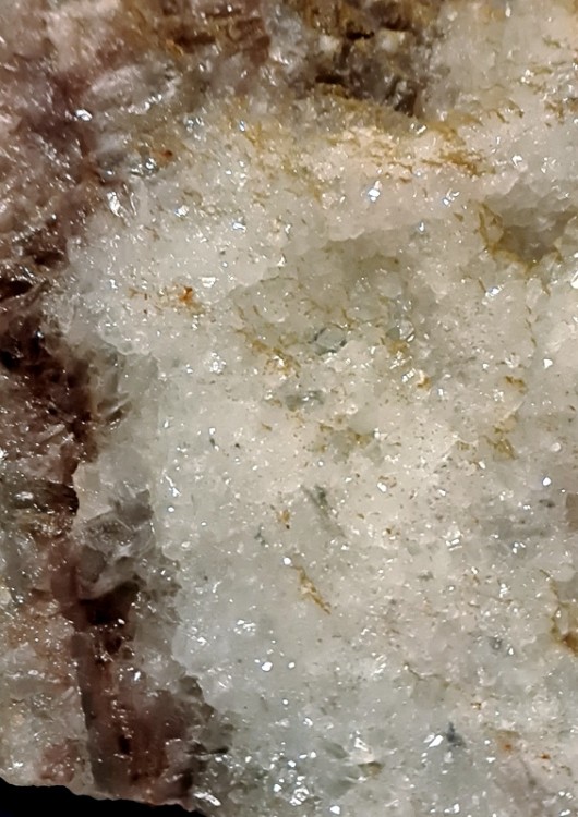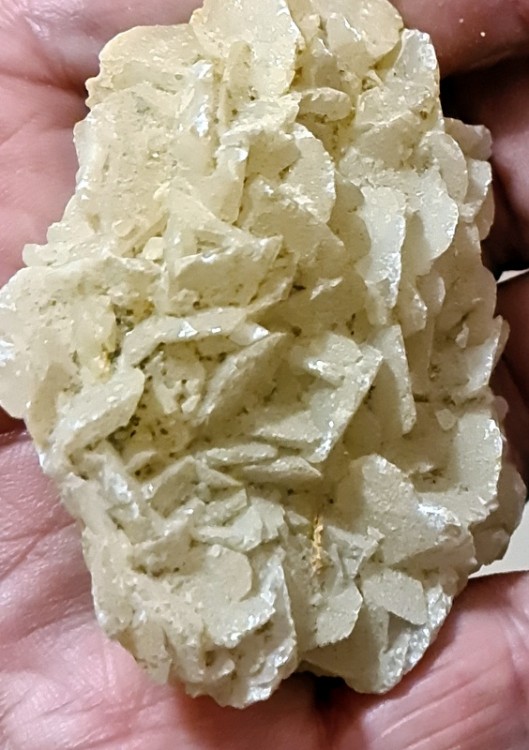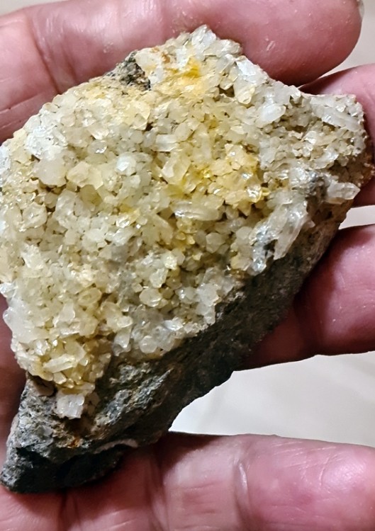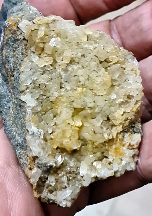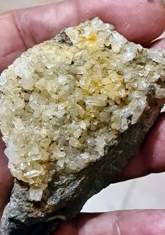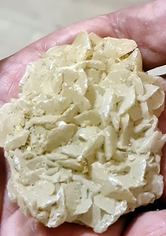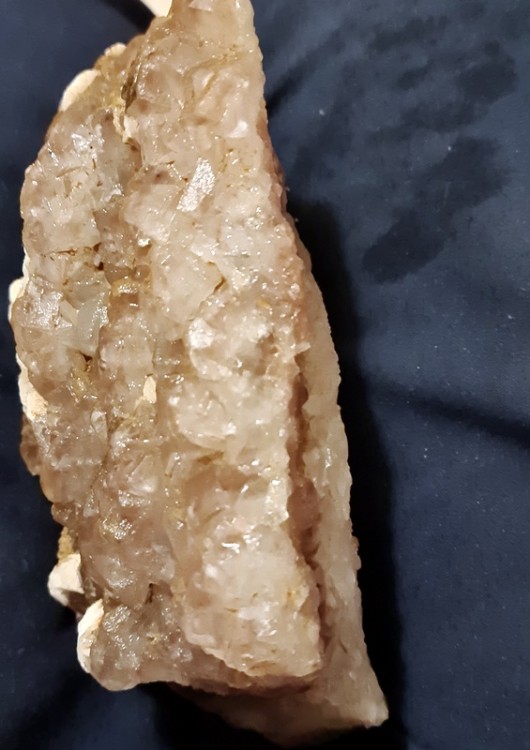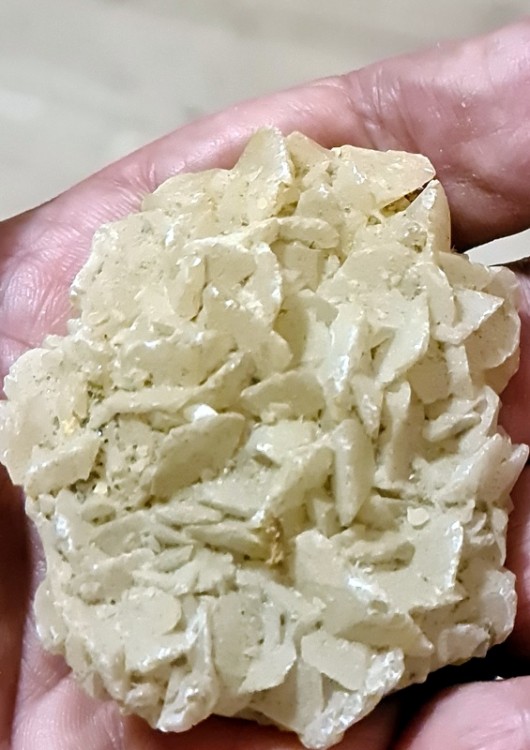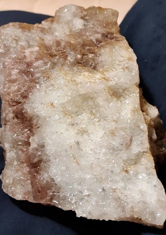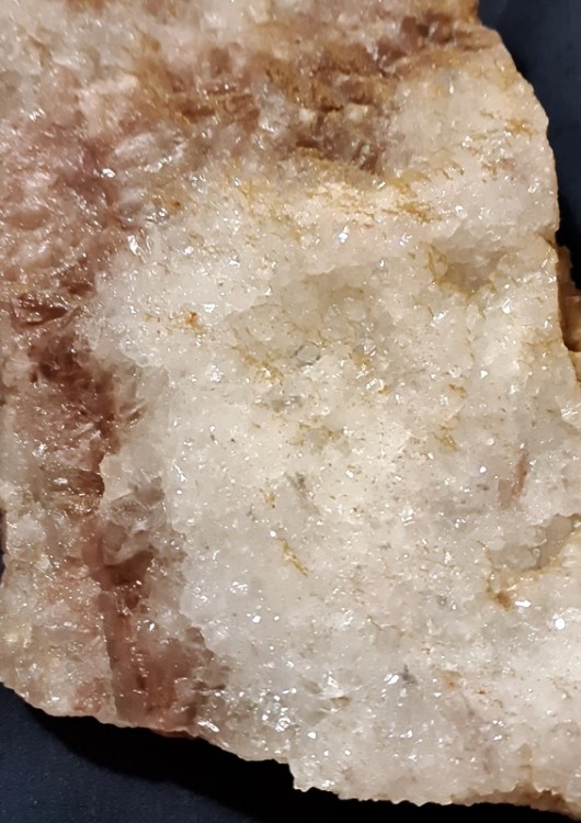 Sur la partie épaisse blanche et compact au dos aucune réaction. sur les cristaux de devant crème réaction bouillonnement . Sur le livre de la mine des PORRES j'ai à peu pres la même ? -