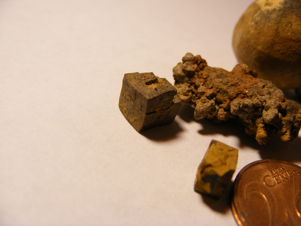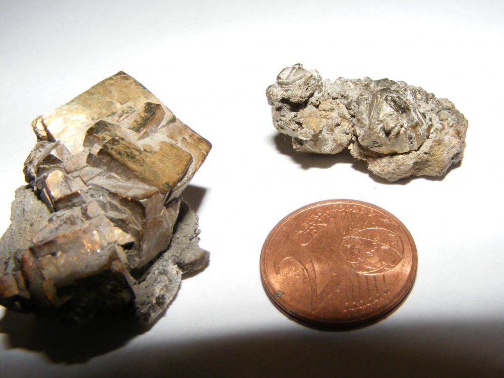 2 pyrites trouvé dans une veine de calcite dans le Coiron.