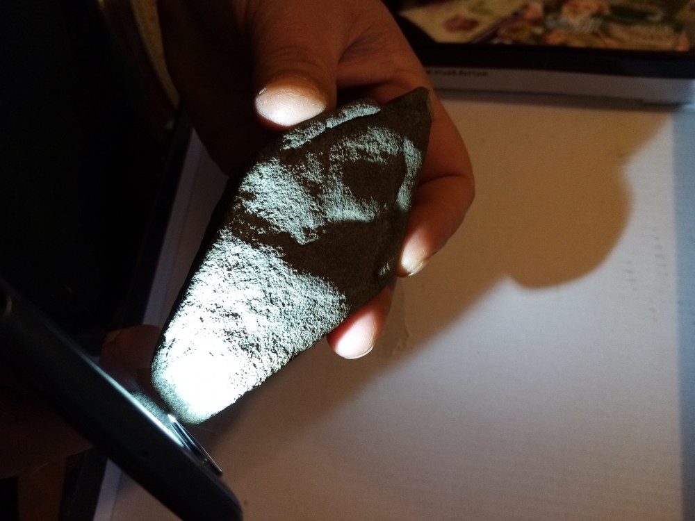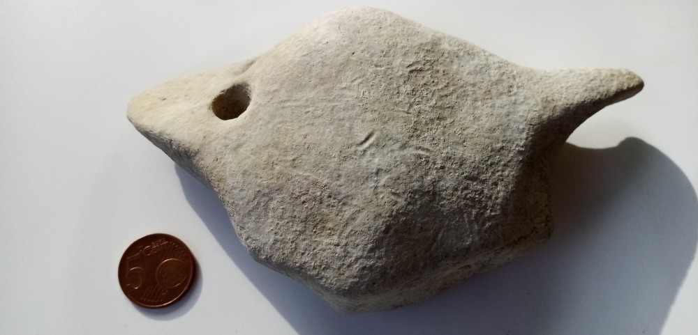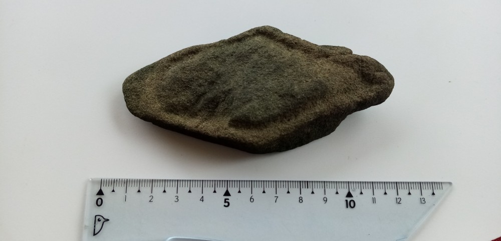 Bonjour j'ai trouvé sur une grève au bord d'une rivière en Bretagne cette pierre qui semble taillée en losange. C'était à côté d'une ancienne villa gallo-romaine. Ca me semble trop régulier pour être naturel mais je ne sais pas. Pensez-vous qu'il peut s'agir d'un fossile ou d'un galet taillé à la préhistoire ou d'une petite sculpture antique ? En granit ou en grès ? 11 cm sur 5 et 120 g Merci pour vos retour !