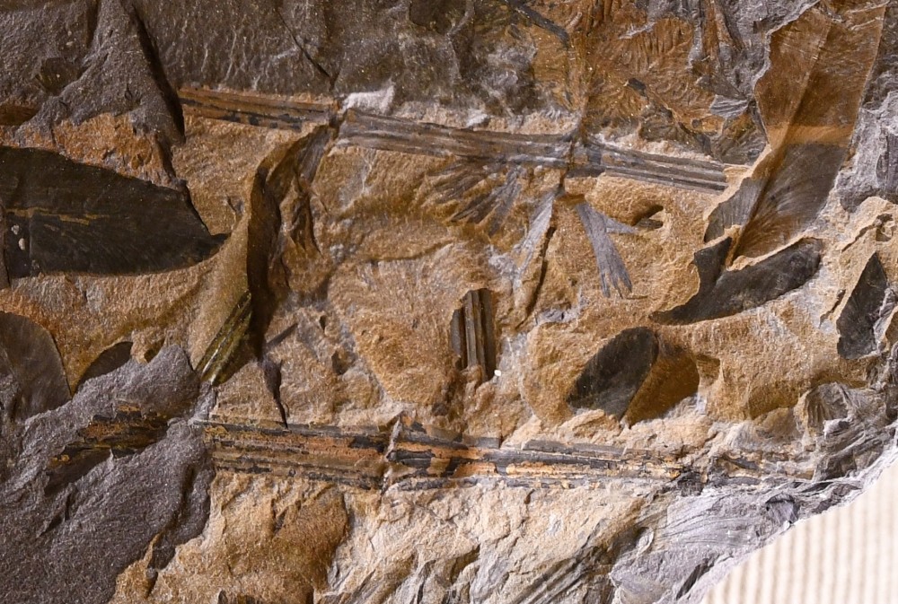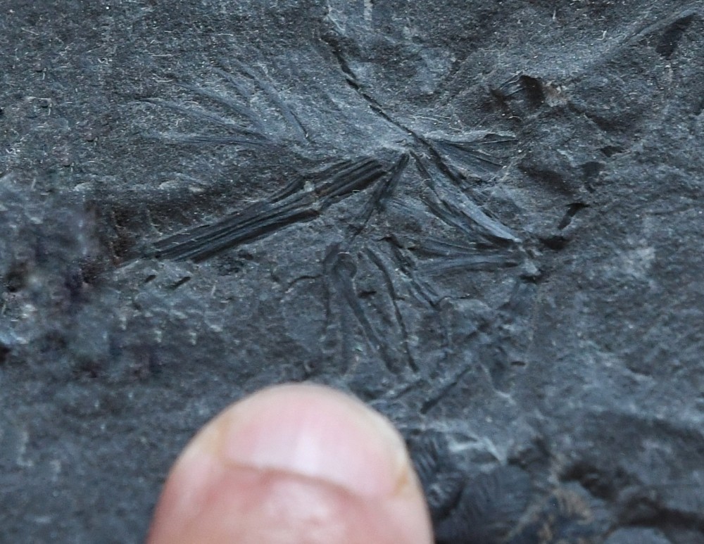 1. Effectivement la plaque contient d’autres traces que j’avais identifiées en tant que sphenophyllum mais je pensais que ces traces là étaient différentes