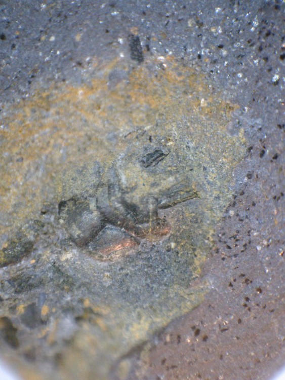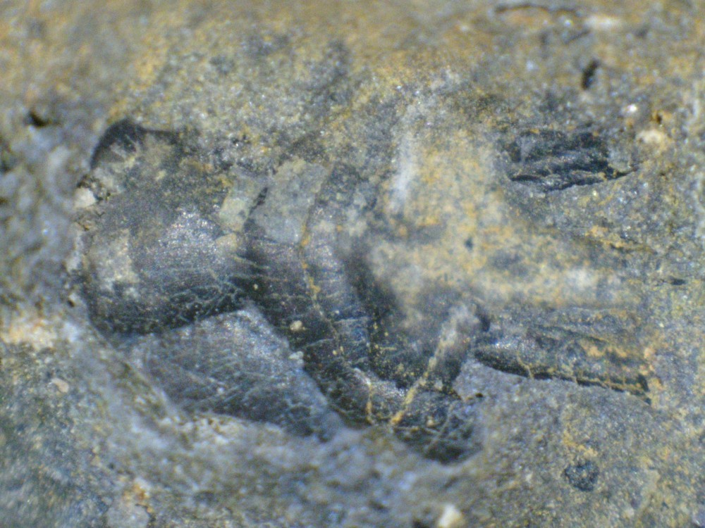 11. Bonjour, une fois de plus je viens vers vous avec un petit fossile trouvé dans un galet dévonien. Celui-ci fait à peine 2 cm de long et, après un petit traitement à l'HCl pour ôter un dépôt de calcite, j'y ai découvert les restes d'un petit fossile montrant une carapace (moule interne et externe) ainsi que plusieurs structures droites (pattes ou pinces ?). Le céphalothorax, externe, le plus complet ne fait que 2 mm de long et est prolongée par deux fragments de pattes. Je supposes qu'il s'agit d'un arthropode proche des crustacés avec des reliefs que je trouve néanmoins très (trop ?) modernes pour un fossile du dévonien. Mes recherches m'ont dirigé vers les Eumalacostraca mais je n'ai trouvé aucun représentant ressemblant de près ou de loin à ce spécimen du givétien probable. Qu'en pensez-vous ? Les 2 premières et les 2 dernières photos sont en creux (moules externes); les autres sont en relief et correspondent aux moules internes.