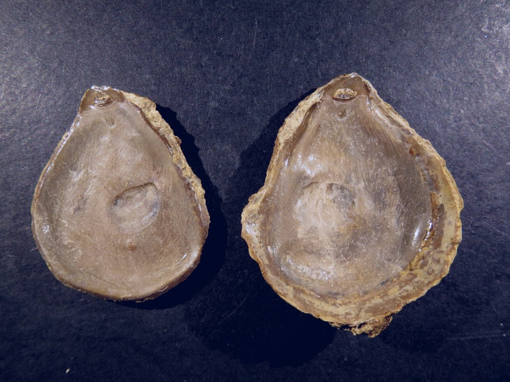 Le citron risque également de "bouffer" la rare perle ... s'il y en a une ; comme à gauche de la photo, juste sous l'empreinte musculaire, de cette petite huitre du Bajocien/Bathonien d'Alsace, découverte lors du dégagement de la cavité. -