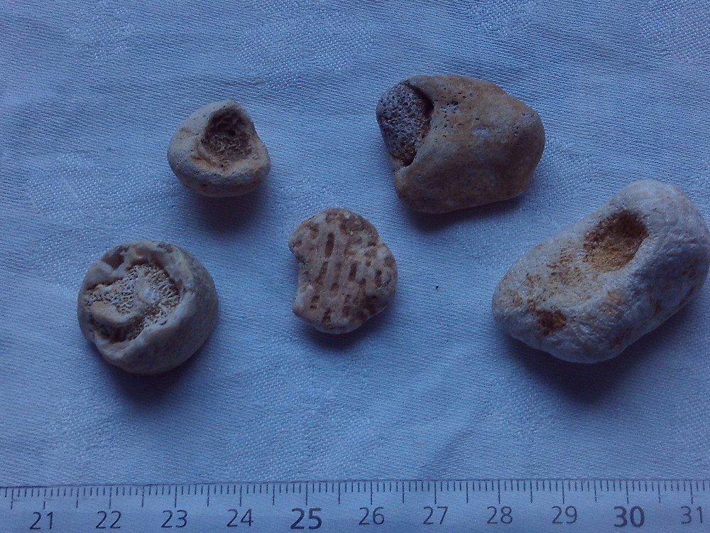 Bonjour, graines et bois ne devraient-ils pas avoir la même couleur noire ? Ou provenant de deux niveaux différents ? Os et bois fragmentaires ne sont pas toujours faciles à distinguer en l'absence d'une coupe. Des dépôts en couches peuvent également être des oncholites mais pas vraiment fragiles. -