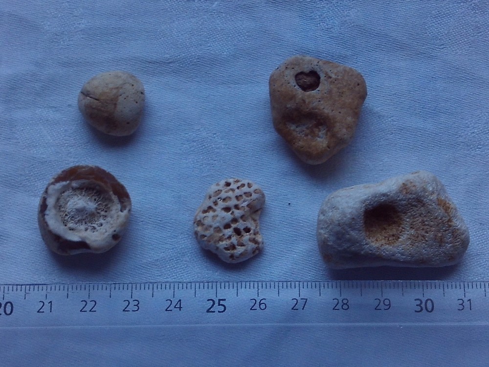 Voici quelques photos de différents silex trouvés après creusement par les gamins et avant le ramassage par les agent de la municipalité. Une molette (?), des silex grossiers probablement amenés et des éponges et des coraux provenant du niveau inférieur. Evidemment au vu du marnage et des touristes impossible de faire une coupe "stratigraphique", mais l'érosion naturelle et enfantine de la plage pourrait sans doute découvrir de belles découvertes. -