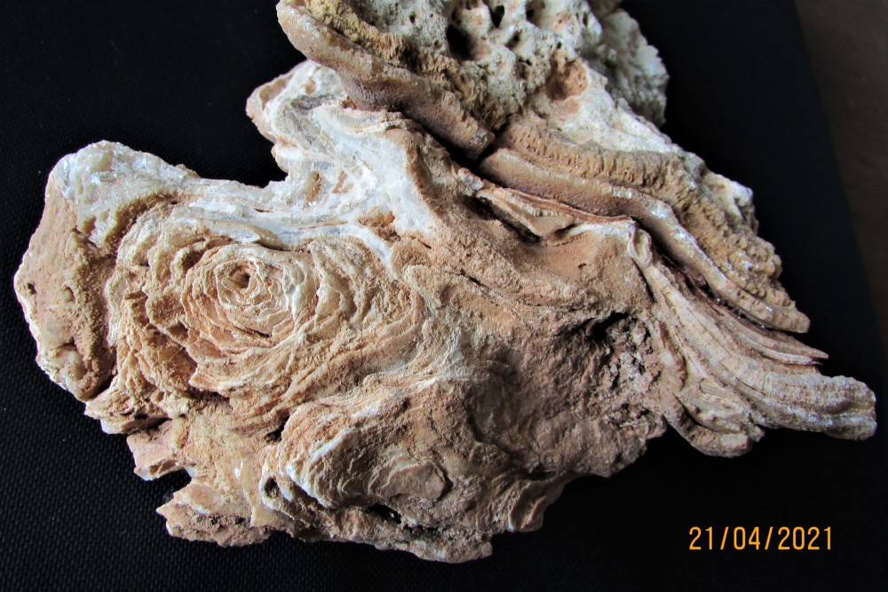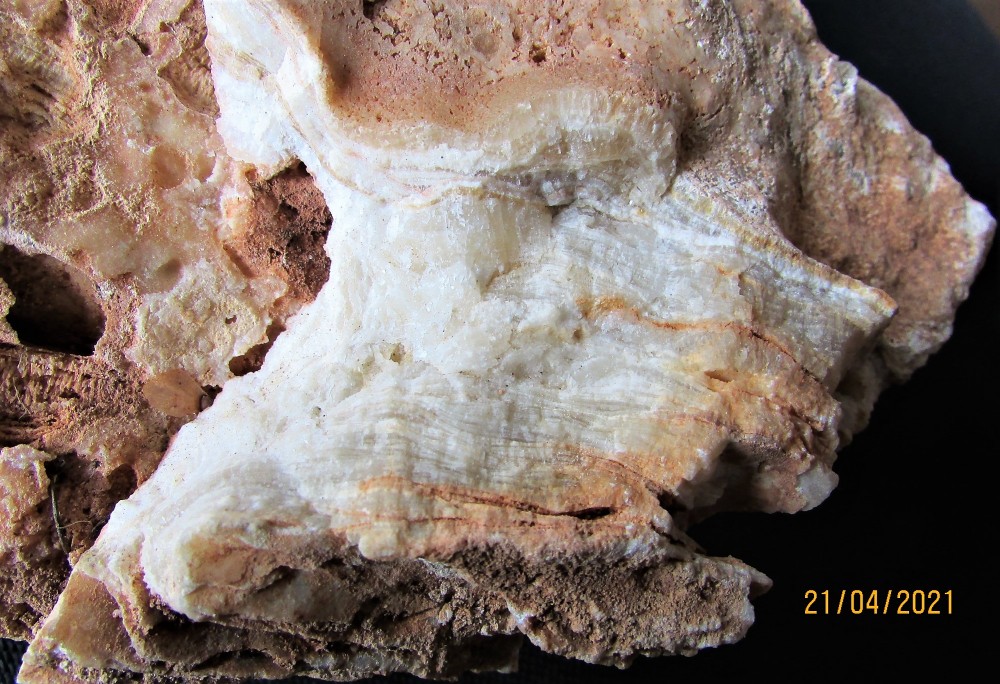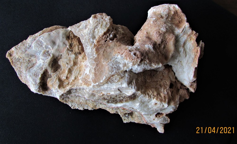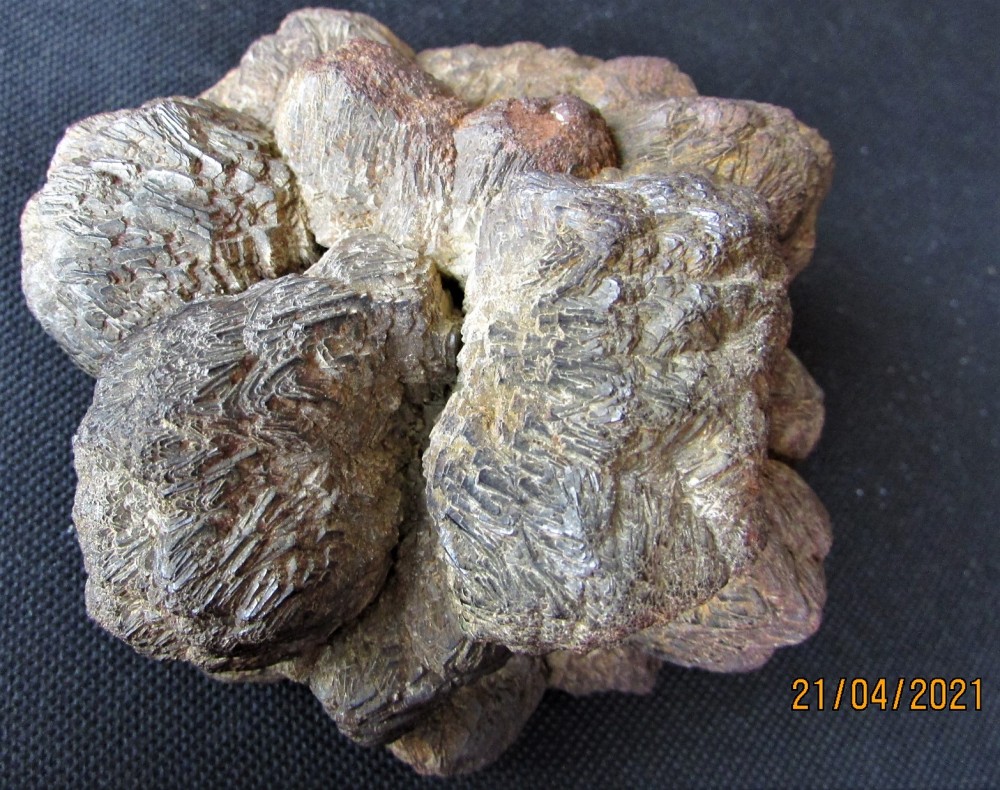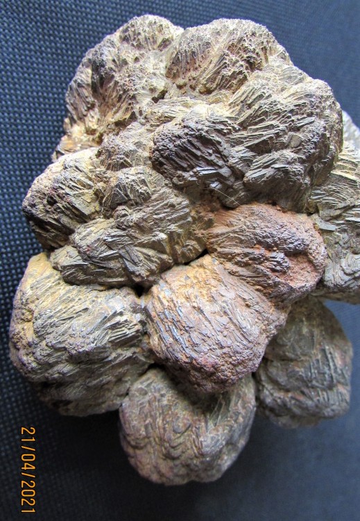 - Seconde pièce ( 1,2 KG ) doit être une marcasite ( à confirmer ) , pas de réaction au HCI , le recto raye la calcite et la partie grisâtre du verso ( friable ) raye le verre .