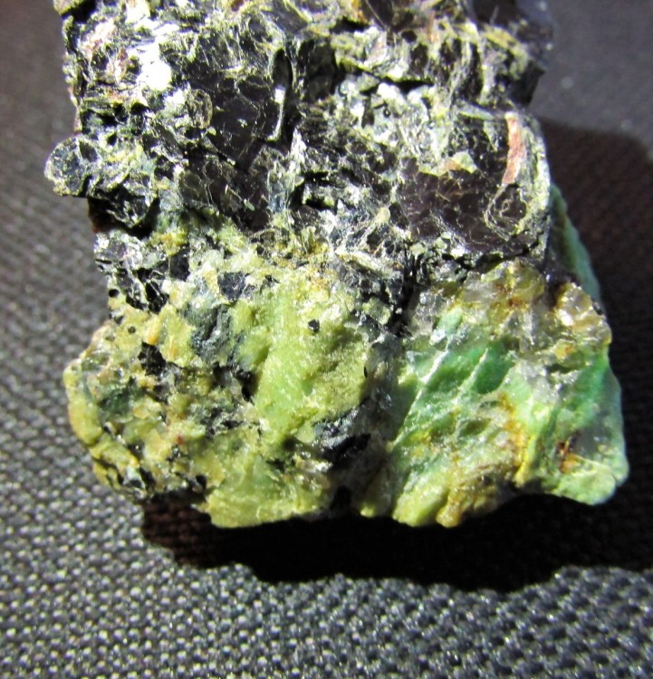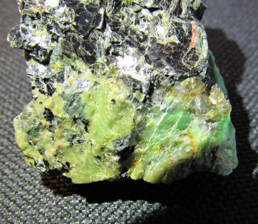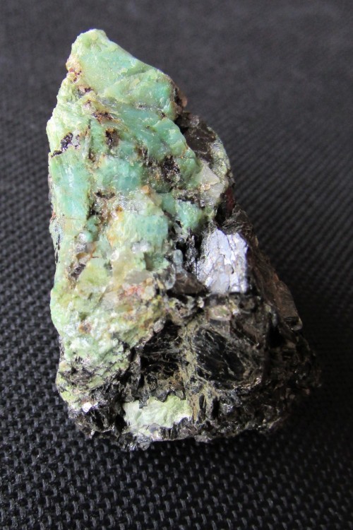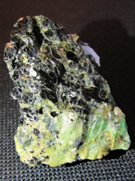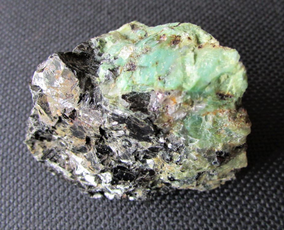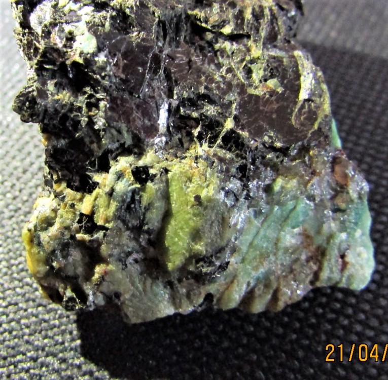 - Première pièce ( verte & noire ) ... aucune réaction au HCI ( le minerai vert raye le verre , le minerai noir raye la calcite mais pas l'acier ) .