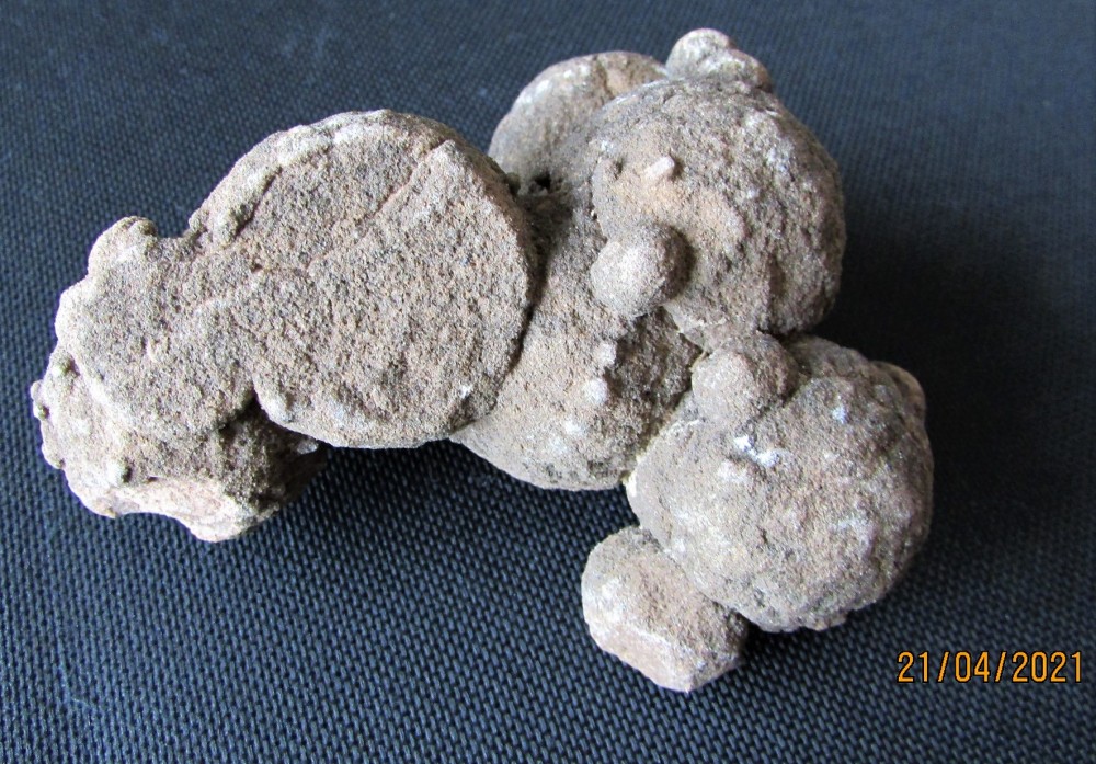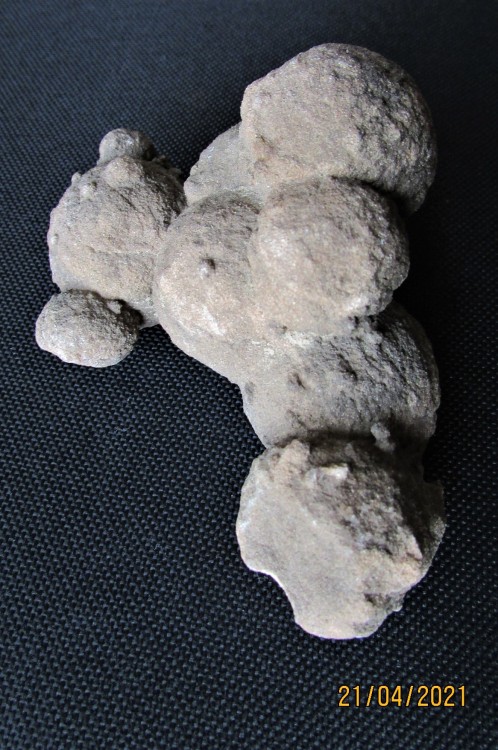 - Troisième pièce ( d'origine volcanique ou coprolithe ? ), réaction effervescente au HCI et raye le verre .