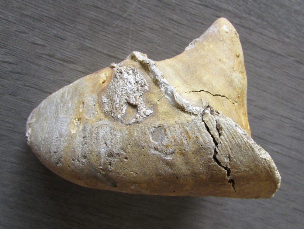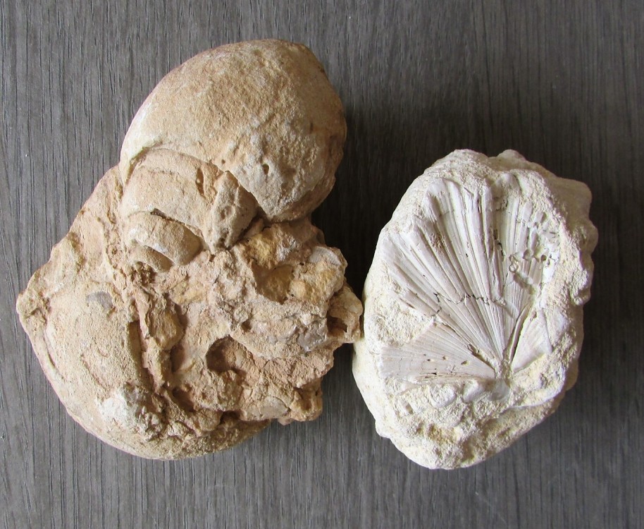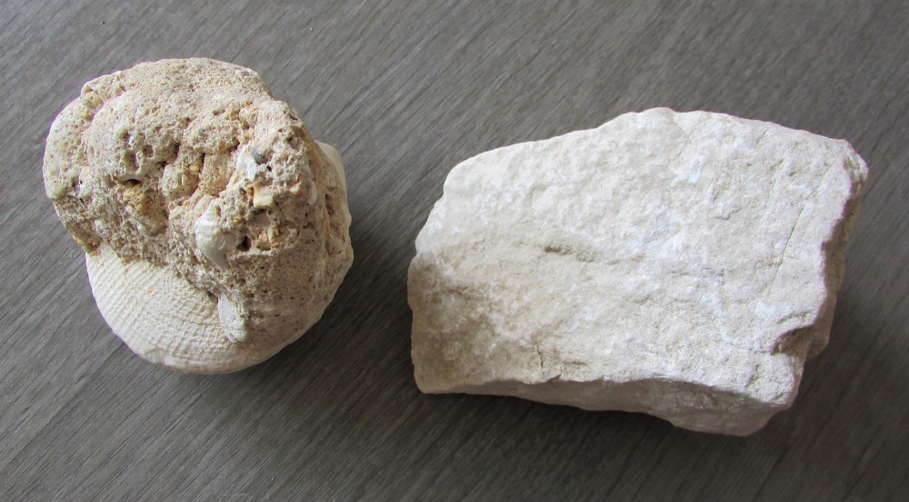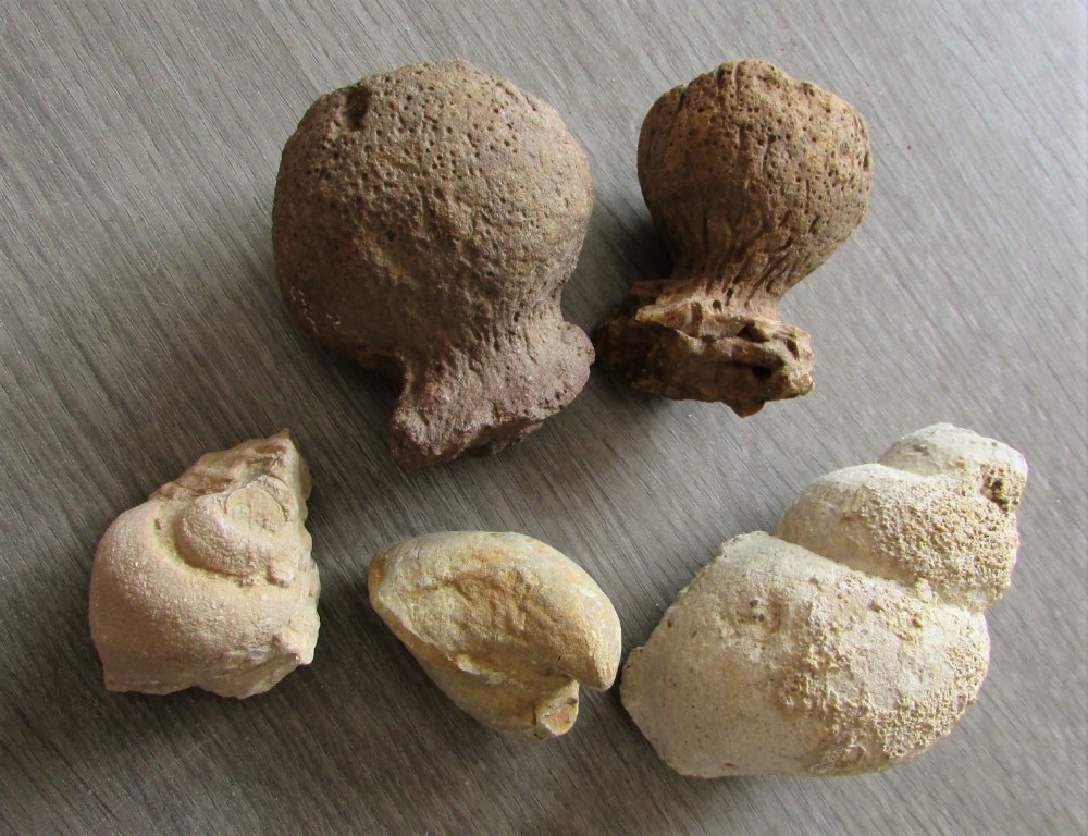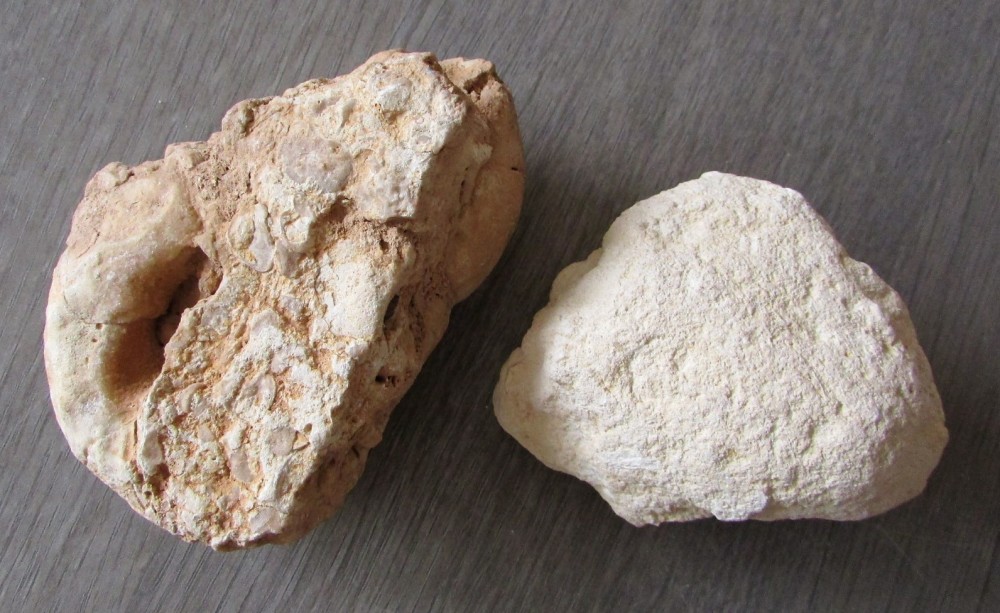 - Quatrième pièce ( Coprolithe ? ) , réaction effervescente au HCI et raye le verre .