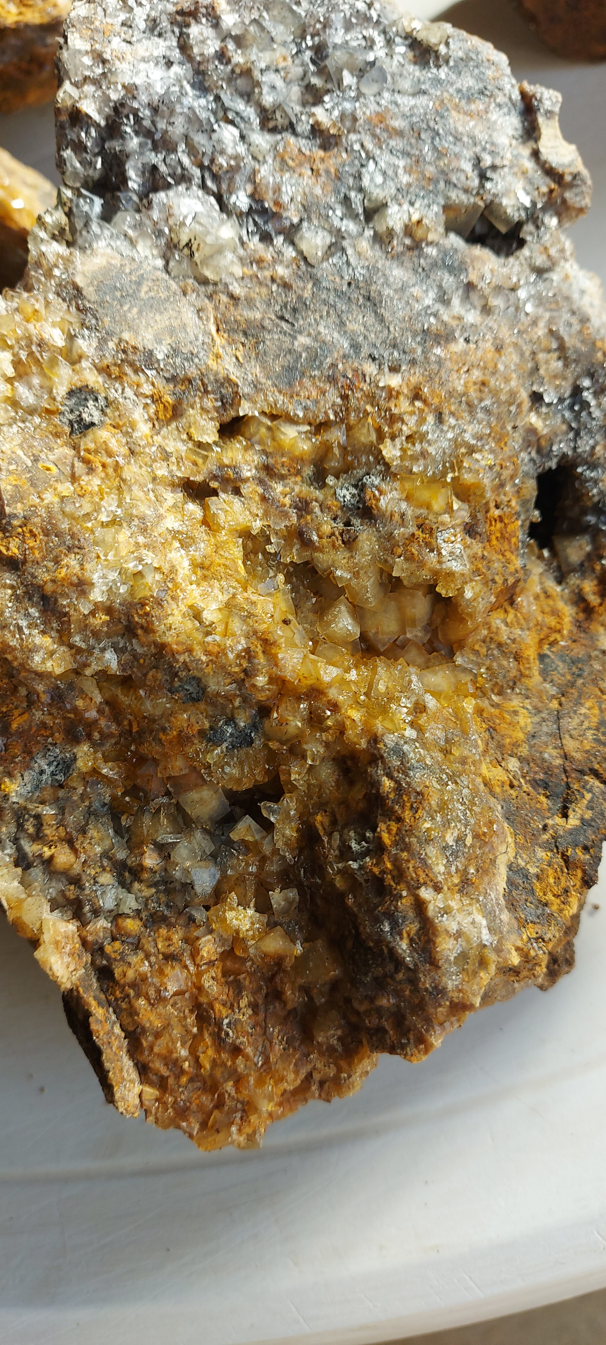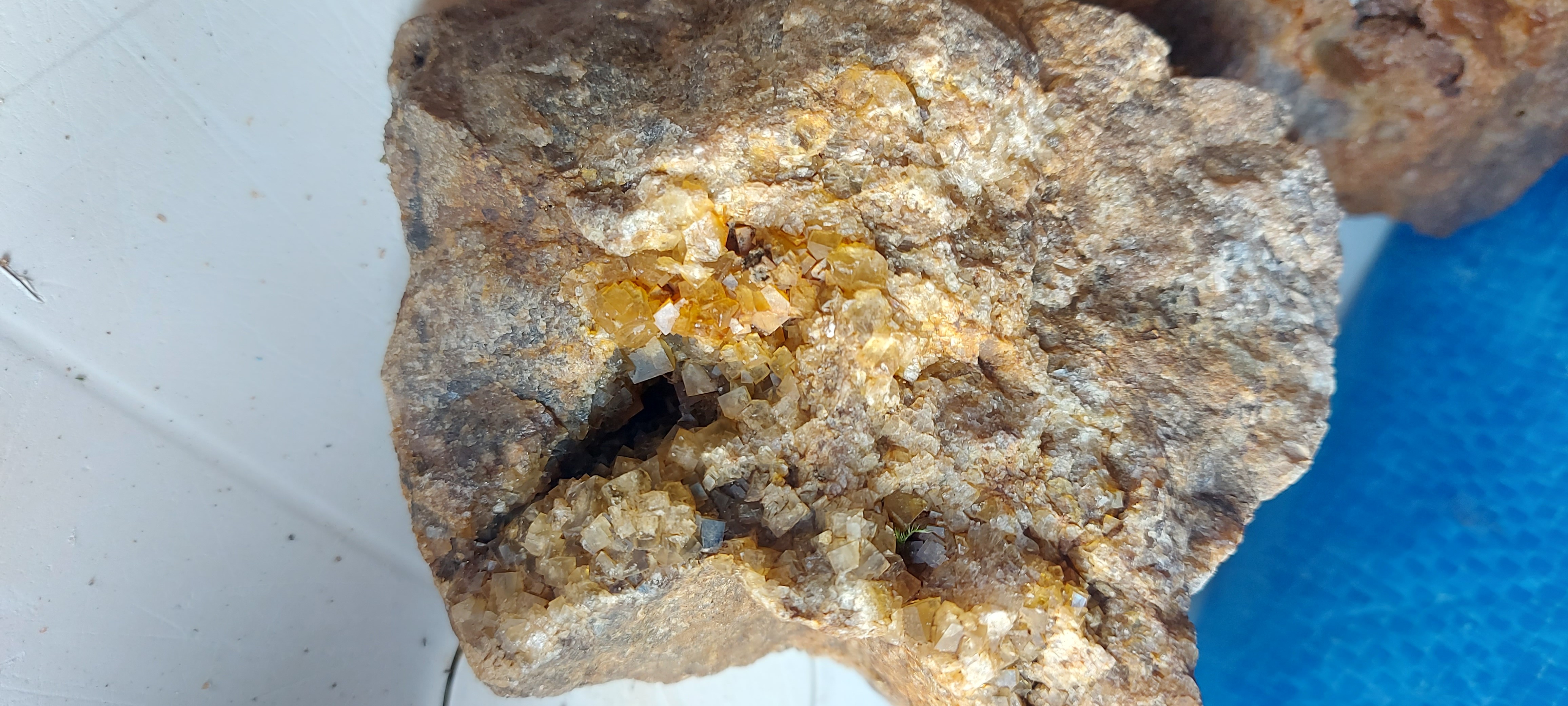 On prend les mêmes et on recommence! Résultat de la matinée, quelques photos mais pas de toutes les pièces. Il en reste a décharger de la voiture. Je ne mets que les fluos/quartz. D'un coté c'est la majorité des pièces 🙂 C'est top, on est a l'ombre pour fouiller. 0 tiques après inspection! On part sur de la petite fluo plutôt lactescente 0.5mm env et quartz Idem en version jaune (0.5mm) On reste sur du jaune translucide (translucide non colorée sur le bas), mais sans quartz. Et enfin on passe sur du 1mm environ, mais un peu altérée, dommage Bonne fin de journée a tous! -
