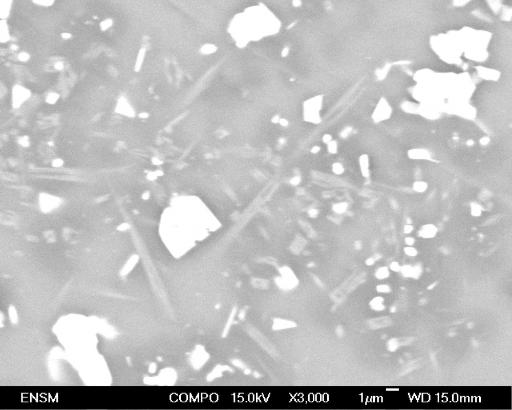 Les aiguilles creuses que l'on voit dans le bas du cliché 2, et qui polarisent dans la fin du premier ordre, regarde STP si l'extinction est oblique et l'allongement +/- ? Ça ressemble à de la mullite. En bas du cliché 1, on dirait bien un carbonate, qui polarise dans les teintes des ordres supérieurs. Bizarrement, on dirait qu'il est dendritique.