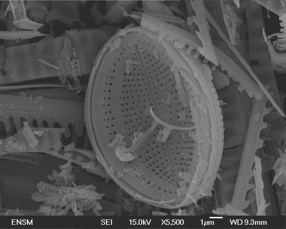 Des idées pour identifier les bestioles ? Échantillon de diatomite provenant d'un exploitation ardéchoise. Pas très vieux donc, mais je rame en micropal... -
