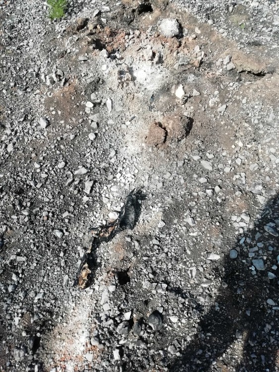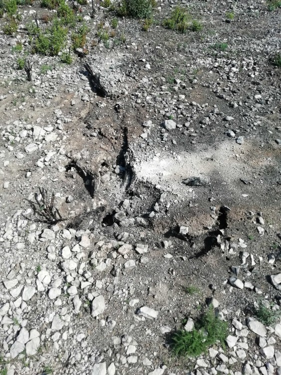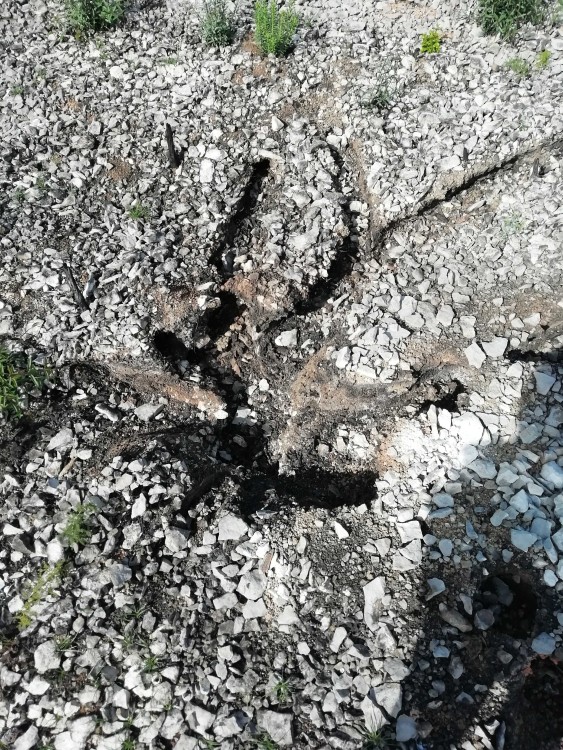 Petite virée sur les terres calcinées au sud de Bages (11). Le sentier du golfe antique serpente entre étangs et les collines noircies par les récents incendies. Les pins calcinés sont toujours debout, mais assez curieusement, les troncs qui étaient déjà au sol ont laissé des empreintes en creux dans le cailloutis.