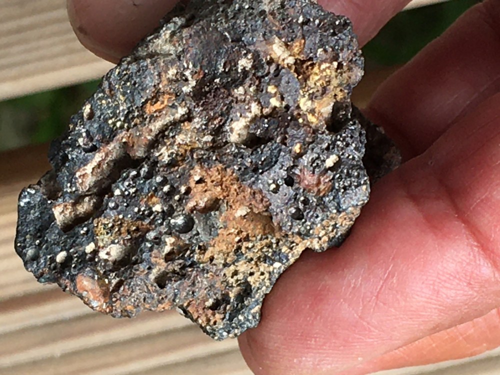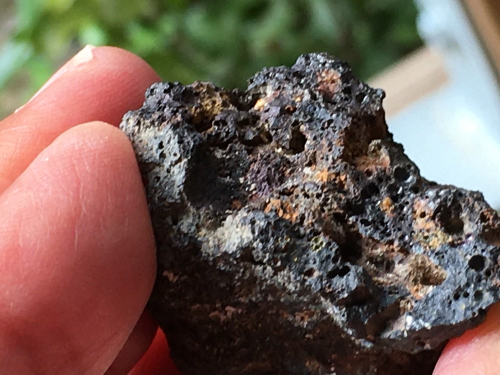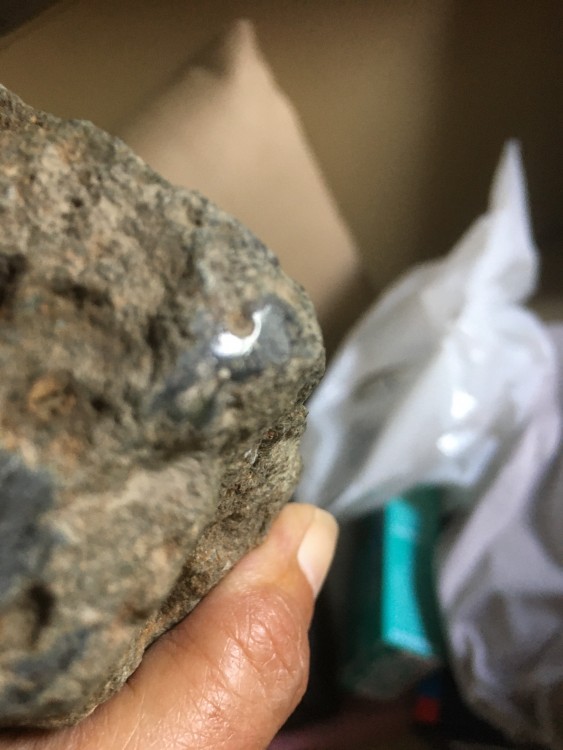 merci beaucoup pour votre attention et vos lumières c chouette. tout d abord j ai refait ma densité correctement ......je suis a 2,85j ai trouve la pierre en zone rose sur la commune de Coti chiavari un peu sur les hauteurs dans la foret domaniale pas très loin de la grande plage de Mar e sol je fouine la car j ai vue un bolide il y a plusieurs années je dirai environ sept ans au début je trouvais que c était une grosse étoile filante j ai pas réaliser tout de suite je ne pense bien sur pas avoir trouve une meteorite mais je m y intéresse quand même je trouve que c plus ludique d apprendre la géologie avec une étude de roche concrète c plus formateur et ça permet d avancer en douceur comme un diagnostique différentiel en quelque sorte j ai fait le test a l acide chlorhydrique sur le petit morceaux de la cassure la tache un peu rosée a moussée puis carrément disparu les deux autre traces n ont pas mousse ni la partie bleue pour le gros morceau les traces blanches c des coups de marteau .... j ai donc change de zone j ai teste sur le dessus de la pierre et j ai eu zéro réaction j ai mis l acide pur je sais pas si c bien ? j ai vue des videos sur you tube sur météorites lunaire très ressemblante et j ai simplement pense qu il fallait creuser un peu le sujet ......et j aimerai bien savoir ce que c exactement pour nourrir ma curiosité je sais que c pas facile avec de mauvaises photos
