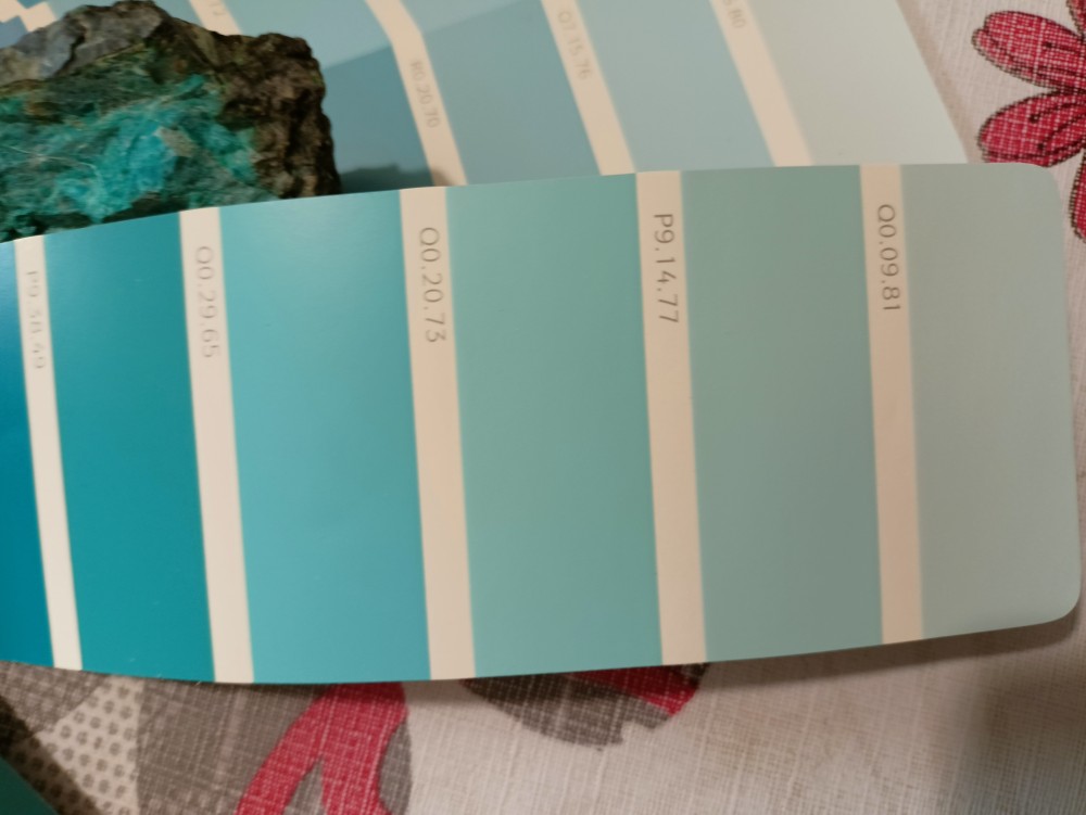 J'ai retrouvé un colorimètre de sikkens. La couleur est bien dans les tons bleus et pas dans les verts. Je mets quelques photos en PJ. -