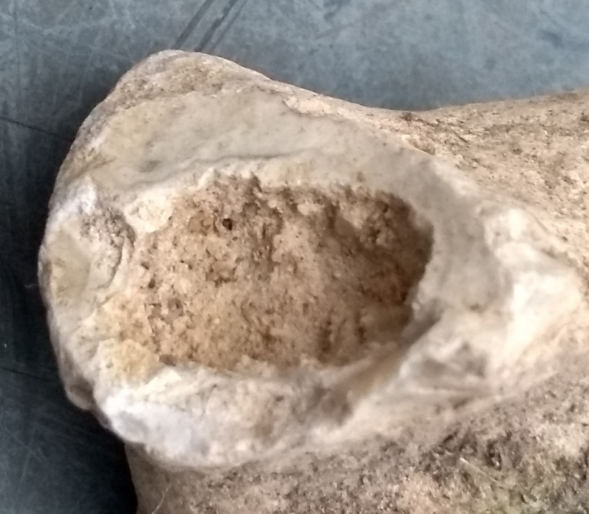 Pourtant il y a ce creux avec des résidus blanchâtre dans le fond .. c'est bien rond avec une sorte de croûte fine à l'extérieur.... Ça a la taille et ça ressemblerait aussi à des photos d'oeuf de tortues fossile... Y a t il des tests à faire ? -