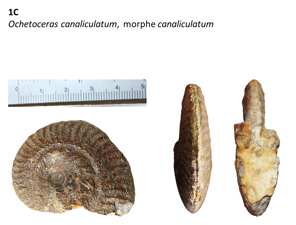 Bonsoir 🙂 Comme expliqué dans mon fil de présentation, je suis allée dans la région de Loudun pendant ces vacances. J’ai appris qu’il y avait beaucoup de fossiles dans le coin. C’est ainsi que j’ai trouvé environ une centaine d’ammonites (et quelques bélemnites + un bivalve). J’aimerais essayer d’identifier mes ammonites, au moins quelques-unes d’entre elles. Pour l’instant, je me suis seulement intéressée aux ammonites qui ont coquille involute (il faut bien commencer par quelque chose). Je suis totalement novice dans le domaine (et mes cours de géologie remontent à longtemps…), alors excusez-moi d’avance si je dis des choses qui peuvent sembler stupides 😉. D’abord quelques infos sur la couche géologique et les biozones correspondantes J’ai cherché la carte géologique de mon point de collecte sur le site https://infoterre.brgm.fr/page/cartes-geologiques J’ai compris que la carte géologique d’une zone est appelée « feuille ». Je ne préfère pas donner le nom de la feuille (et donc de la zone) au cas où (j’ai remarqué que les gens ne donnaient pas trop les coins à fossiles, j’imagine qu’il y a une bonne raison à ça). J’ai aussi découvert que ces feuilles avaient des notices avec plein d’infos utiles ! :D Si je me fie à la notice de la feuille correspondant à ma zone de collecte, la couche où j’ai ramassée mes fossiles est appelée « j4-5 (Oxfordien moyen) ». La description de cette couche est « Calcaire argileux en petits bancs alternant avec des marnes grises compactes, marnes beiges à Spongiaires. » Il est précisé dans la notice que « aucun affleurement montrant le contact Callovien - Oxfordien n'a pu être découvert sur le territoire de la feuille. L'indécision sur la présence effective de l'Oxfordien inférieur, même condensé, n'y est donc pas levée; c'est pourquoi cette assise est notée j4-j5 ». La notice de la feuille indique les fossiles que l’on peut trouver dans cette couche j4-j5 : « La faune, rarement observable en place, est constituée de nombreuses Ammonites que l'on trouve à la surface des labours ou transportées dans les colluvions : Ochetoceras canaliculatum, O. hispidum. Creniceras lophotum, Trimarginites sp., Euaspidoceras sp., Glochiceras subclausum, nombreux Périsphinctidés, Otosphinctes sp., des Bélemnites et des Spongiaires siliceux. Ces derniers, très nombreux, sont de forme plate ou en cupule, petits, souvent brisés dans les labours. Il existe également des Brachiopodes (Argovithyris sp.) et des Lamellibranches. Cette faune permet de rapporter à l'Oxfordien moyen (zones à Plicatilis et Transversarium) et à la base de l'Oxfordien supérieur (zone à Bifurcatus) l'ensemble de la série marneuse dont le sommet est en outre vraisemblablement diachrone. » ð Donc si je comprends bien, plusieurs biozones possibles. Ca ne va pas trop aider pour l’identification, je suppose Première espèce identifiée : Ochetoceras canaliculatum J’ai commencé par tirer mes ammonites. D’abord involutes vs évolutes. Au sein de mes involutes, j’ai vu deux types assez fréquents qui sont, selon moi, des Ochetoceras canaliculatum (M) et des Ochetoceras canaliculatum (m) = Glochiceras subclausum (encore une fois, hommage à Philippe Quereilhac : http://paleopolis.rediris.es/cg/13/A05/ . J’ai lu cet article avec beaucoup d’intérêt) Je vous mets aujourd’hui des photos d’individus que je pense être Ochetoceras canaliculatum (M). J’aurais bien avoir votre avis là-dessus. J’ai d’abord classé les individus 1h-1j comme étant des (m) car ils étaient lisses mais une personne sur un groupe FB fossile (et qui avait l’air assez bien renseigné) m’a dit que c’était des (M) sans doute parce qu’elles sont assez grandes. Mais j’avoue avoir un petit doute car toutes les coquilles de Ochetoceras canaliculatum (M) que j’ai vues en photo avaient des stries. J’aurais bien avoir votre avis là-dessus : est-ce que ces coquilles sont celles de (M) de Ochetoceras canaliculatum ? J'ai mis des noms sur mes images : est-ce que cela vous semble juste ? J'ai mis que la 1A avait un morphe épais et les autres un morphe mince. Je n'en suis pas sûre... Mais ce qui est marquant : la 1A semble beaucoup plus en relief, beaucoup plus "arrondie", et les autres ont plus des formes de disques. Pour l'instant, je n’ai pas fait la photo des tranches de toutes. Merci d’avance pour votre aide !