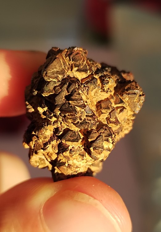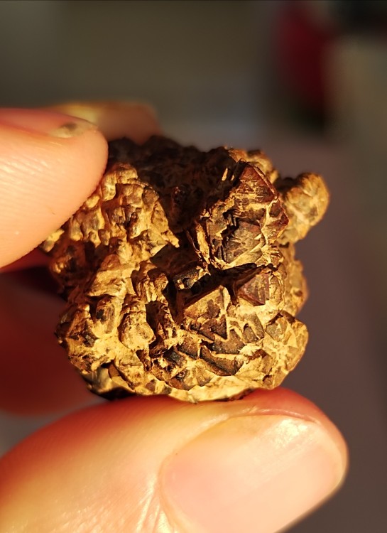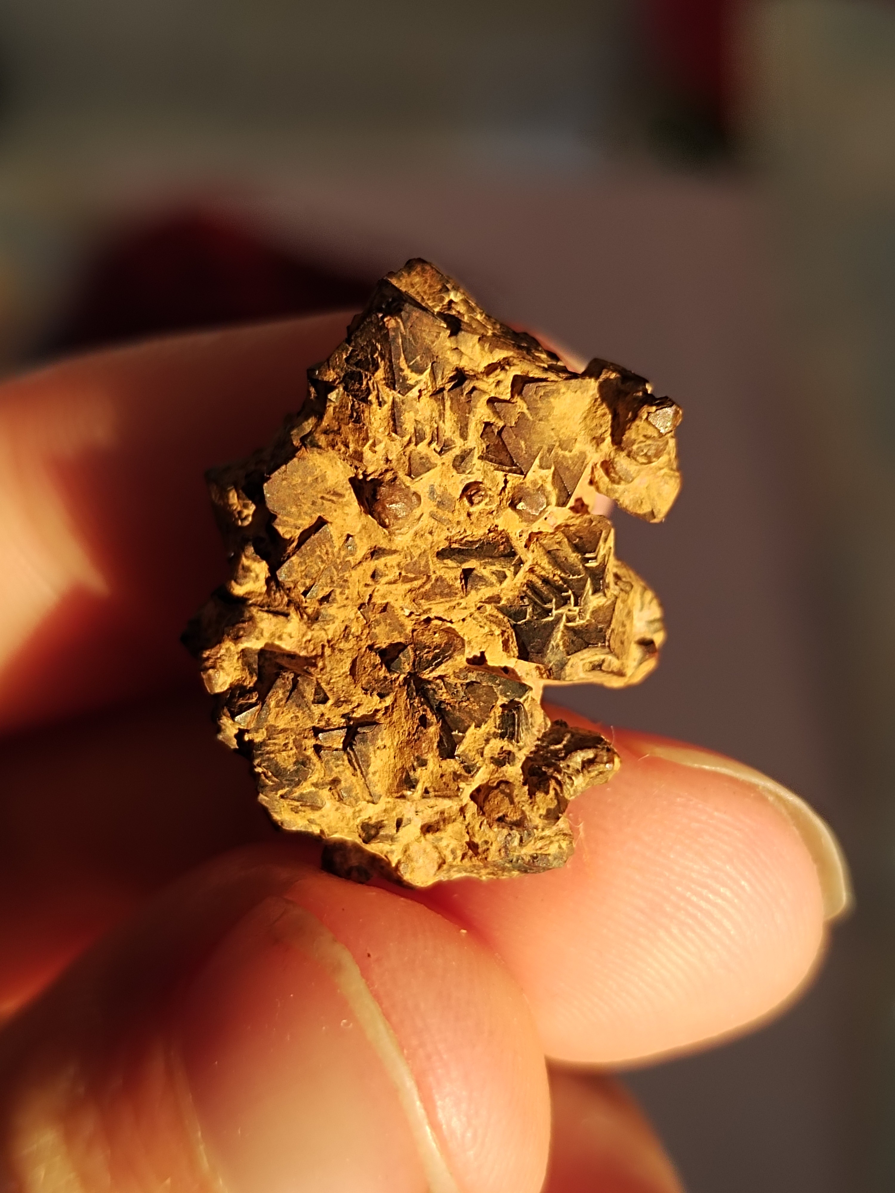 À noter que sur la même pierre il semble y avoir un autre minéral qui a la même forme mais de couleur légèrement dorée avec oxydation marron qui ressemble plus à de la pyrite.
