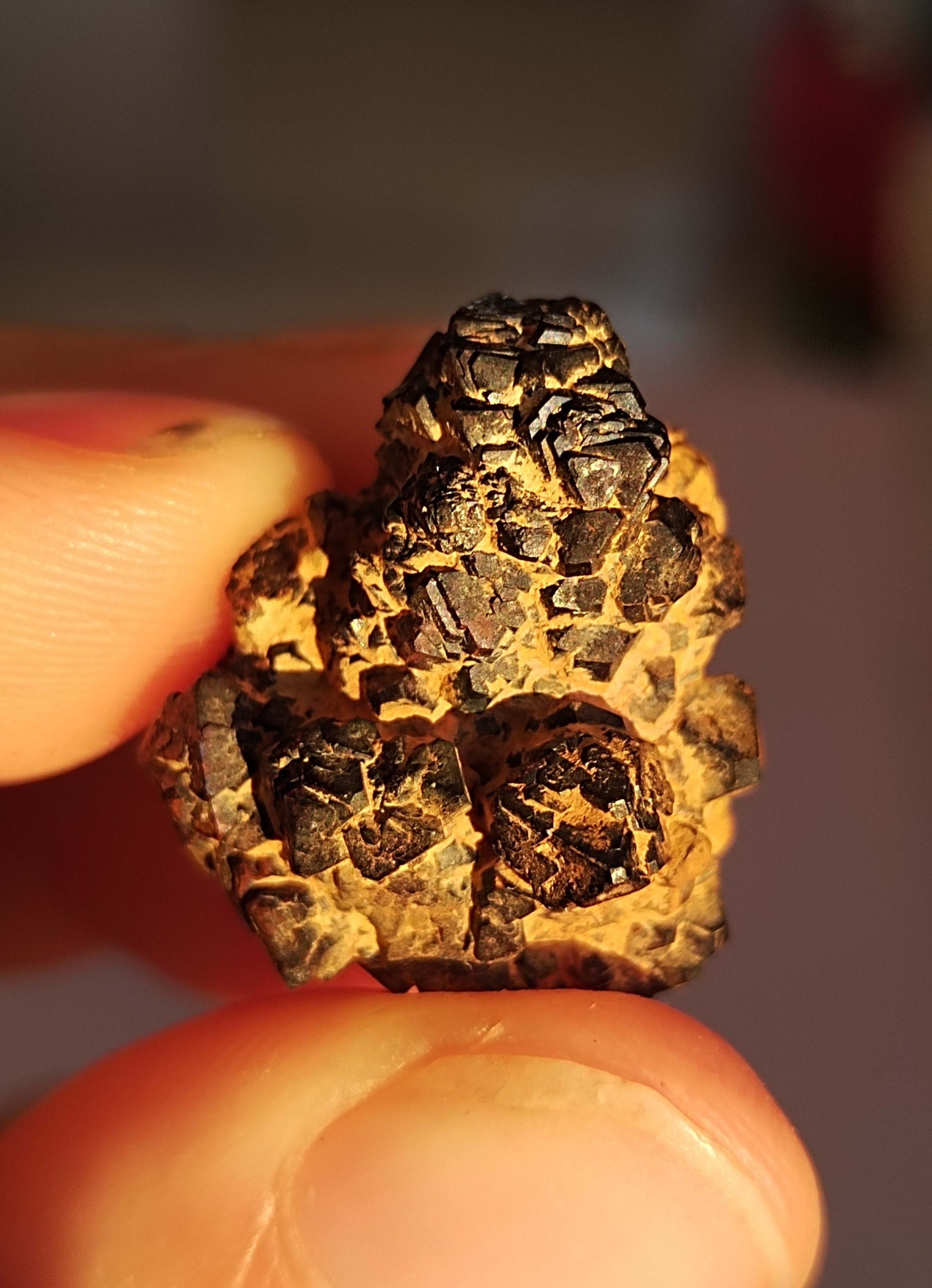J'ai fait un test de dureté, ça raye la calcite mais impossible de rayer de la fluo donc je pense plus à de la sphalérite .