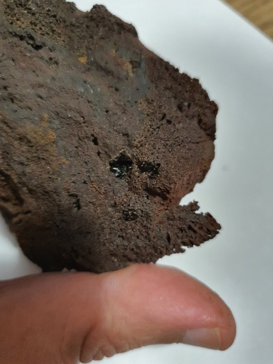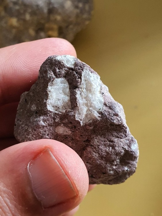 2. Oui marron tirant sur le rouge, mais je ne dois pas avoir la bonne porcelaine, la trace n'est pas nette... Sinon, je suis chti, et chez moi, a part les fossiles c'est pas trop diversifié, mon séjour dans le massif du Sancy m'a enchanté sur la question des minéraux, ça brille de partout, le sol étincelle, mes godasses en étaient couvertes, mes modestes trouvailles étaient à même le sol, pas besoin de creuser, même le granit semble métallique. J'ai essayé quelques pans au village des longes dans la Dordogne naissante, mais je n'y connais pas grand chose, pas vu d'or, beaucoup de sable noir très fin en fin de bâtée et pas mal de paillettes oranges carrées et brillantes, semblables a celle du granit local, ma perception du sujet est naïve, mais ça m'a plu énormément.