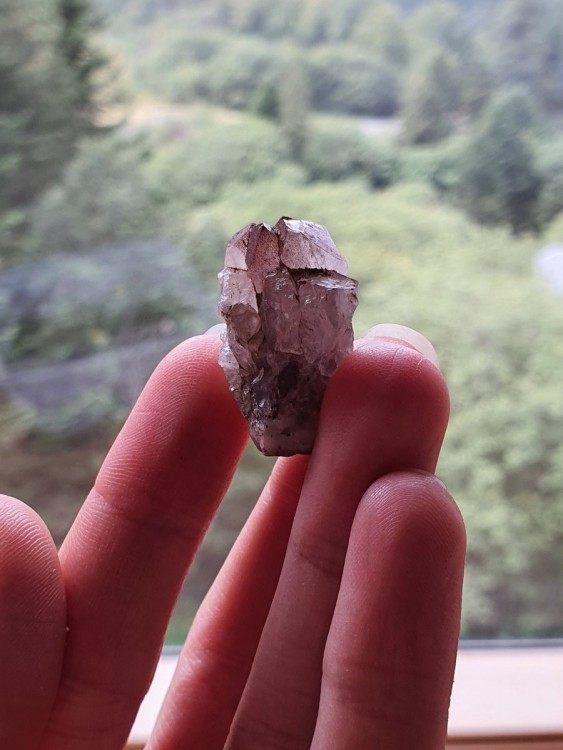 9. Bonjour Amede, merci ! (Photo2)Je n'ai pas de porcelaine, mais je l'ai frotté sur plusieurs assiette dont le fond n'est pas émaillé, pas de trace, ça raye le verre et la lame de mon canif, présente plusieurs faces planes parsemées de craquelures, c'est assez brillant, ça me semble assez lourd mais sans plus, j'ai trouvé de nombreux petits éclats dans la zone, (au pied du mont Capucin, au mont Dore) Merci pour l’intérêt, au plaisir de te lire. Matth