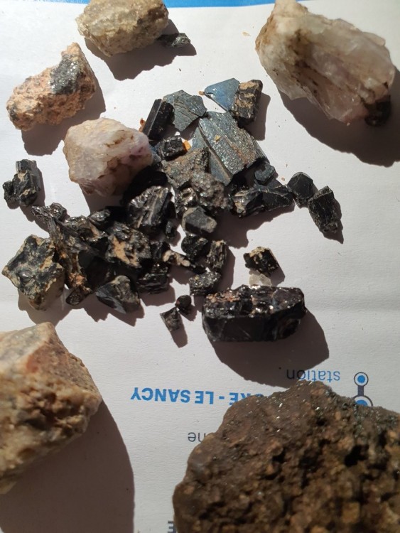 11. Bonjour Je suis Matth 47 ans totalement amateur mais très attiré par les minéraux, j'arpente souvent votre forum, super instructif, mais surtout je me régale des photos partagées par les uns et les autres. Je reviens d'une semaine de ballade dans le Sancy, j'ai fait quelques modestes trouvailles que je partage humblement ici, le tout est a nettoyer (j'étudie les solutions), il y en a plein d'autres mais pas présentables en l’état. Au plaisir de vous lire (Deux ou trois quartz viennent du Livardois) Matth J'ai ma petite idée sur certains sujets comme la Sadinite, Magnétite et Quartz, mais pour d'autres, je cherche...