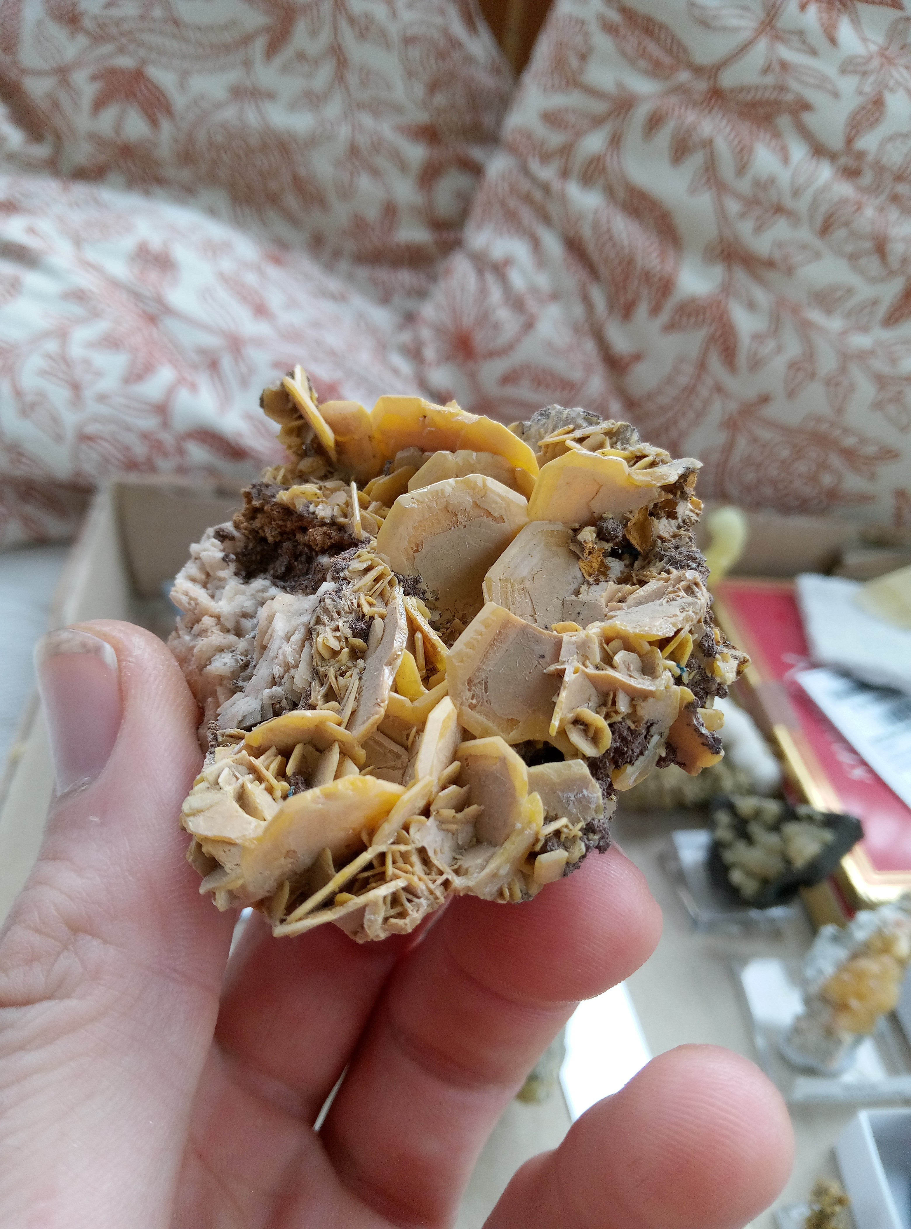 L'hématite du brezouard d' @AMEDE est vraiment sympa👍 Fluo de maxonchamp, avec un superbe zonage multicouche. Acquis sous l'appellation mimetite, mais je pencherais plus pour une Pyro, ce qui collerait plus avec le gîte. Pyro, herival, val d'ajol, Vosges.