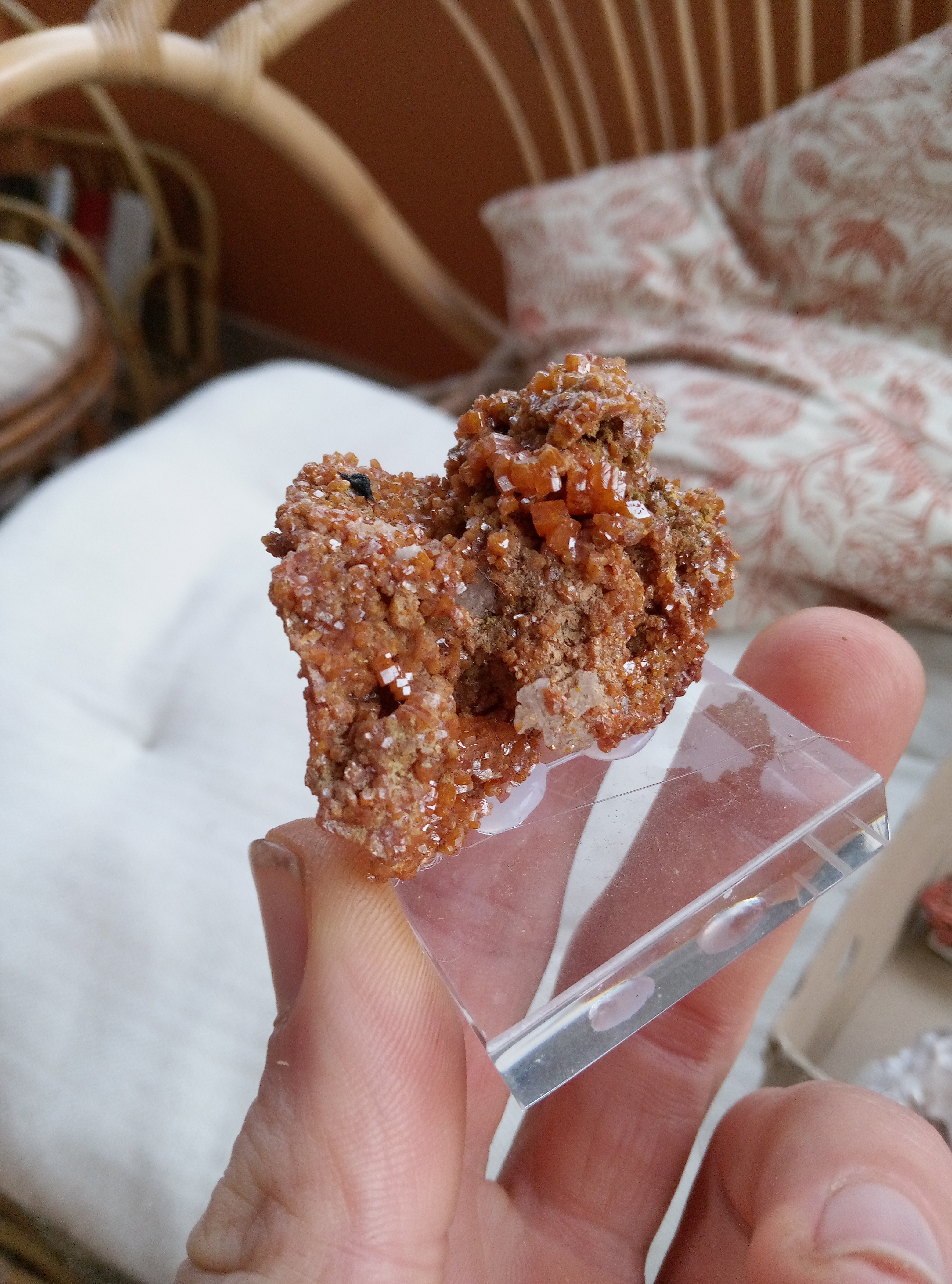 Baryte cretee, hamam zriba, Tunisie. Vanadinite a la cristallisation quelque peu originale, maroc. Petal de vanadinite, maroc. Vanadinite "cat eyes" sur baryte, maroc Quartz bitermines hematoides, Corbières, aude. Étonnant qu'il n'y en ai pas encore sur ce fil. Crocoite, dundas. Jaspe rouge et hématite, saphoz, Vosges. Sphalerite, les malines, gard. Cinabre, perou Realgar, matra, corse Calcite en pagode, Hubei, chine. Aragonite, maroc