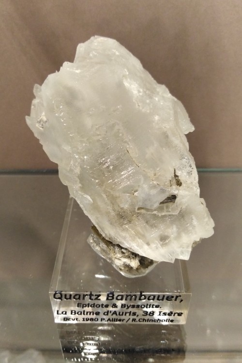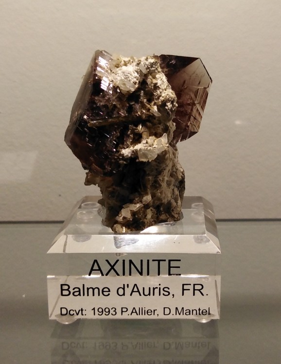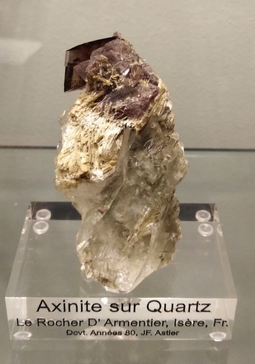 Notamment les fentes qui sont sur la gauche et en contre-bas du gisement principal ont donné des prehnites flabelliformes  associée avec parfois des quartz limpides et avec par endroit de petites axinite (moins de10mm à ma connaissance) bien formées et de bonnes qualités. Il y a aussi des fente à axinite, prehnite, épidote, adulaire et byssolite dans les parois au dessus du gisement principal vu les vestiges trouvés dans les éboulis... Il y a un bloc énorme dans le bas du pierrier un peu au dessus du chemin qui comporte des fentes grattée ou l'on peu encore voir des vestiges de filon de préhnite et d'axinite. Dans les années 80 j'y ai trouvé quelques petites pièces sympas.