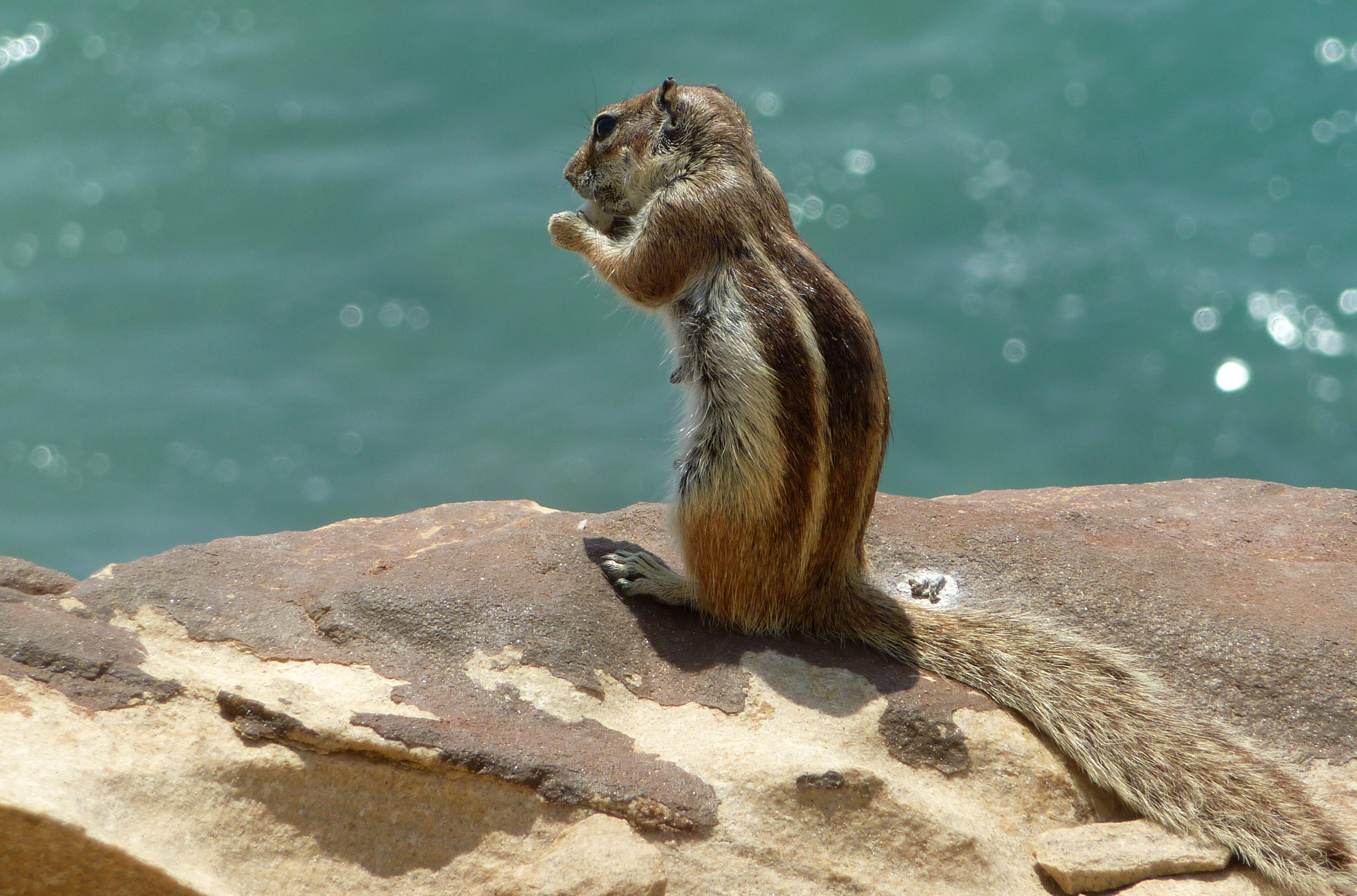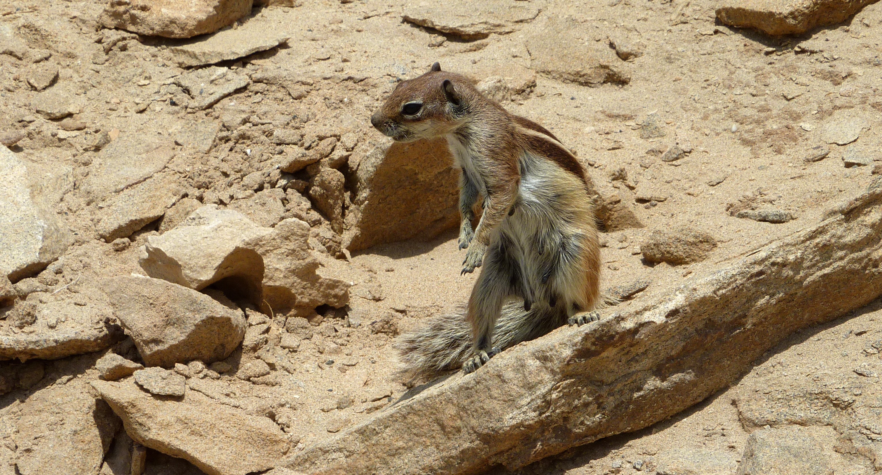 Depuis le temps que je traine sur le forum, j'ai du les poster déjà... mais ces écureuils de Barbarie sont attachants, faciles à observer et à approcher (en quête de nourriture): ici sur Fuerteventura en 2011.