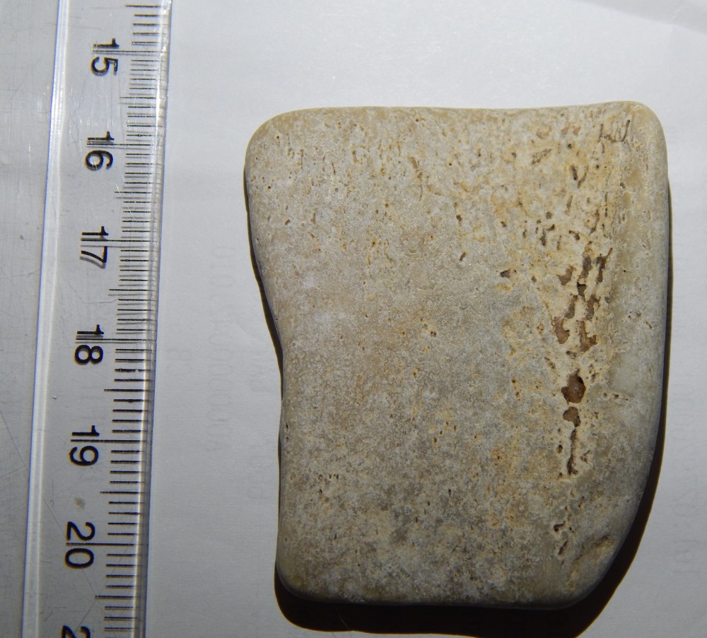 Il s'agit d'une plaque, dont les alvéoles et l'alignement fibreux, trahissent certainement une nature osseuse. Bien qu'il ait pu être charrié et victime de remaniement par les courants, il est fort probable qu'il date du jurassique moyen.
