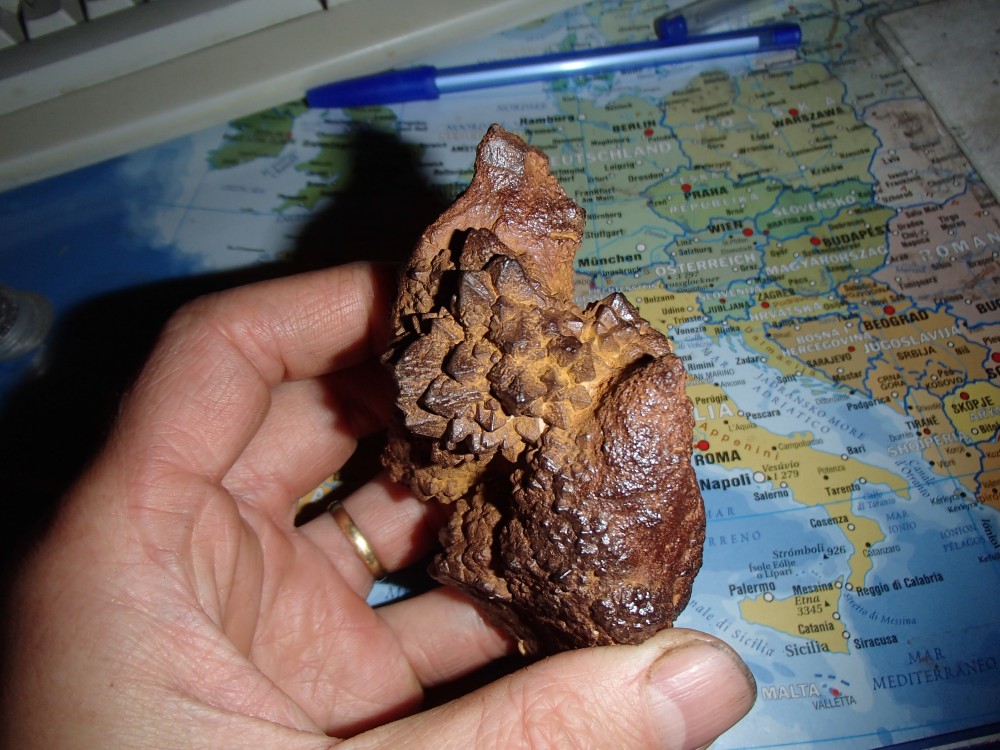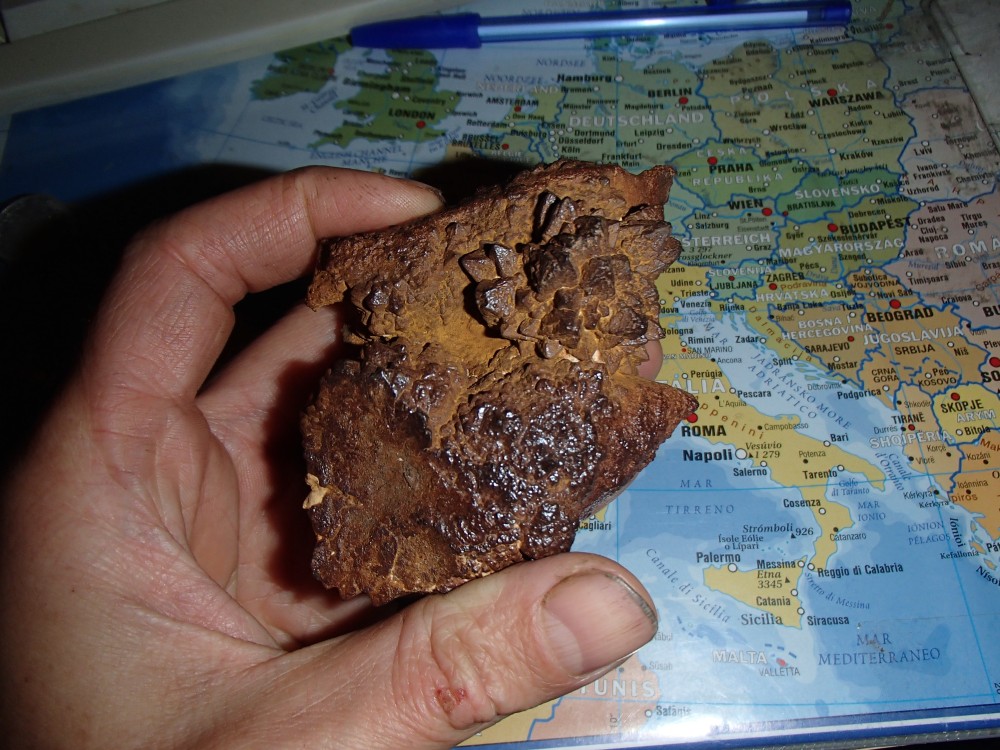 Tout d'abord je tenais à exprimer ma joie d'être un nouveau membre sur ce forum qui me semble géniale et qui va enfin pouvoir répondre à mes envies d'apprendre des choses en géologie. Il y à quelques semaines, je suis tombé sur une roche calcaire au pied d'une falaise calcaire et dont on pouvait apercevoir de jolies cristaux en surface. Après l'avoir soigneusement débarrassé de son calcaire voila ce que ça donne. Sur le net il me semble que c'est une Marcassite mais peut être que vous allez me confirmer la chose? Dans ce cas peut on encore mieux la nettoyer en la grattant avec une brosse spéciale? D'avance merci pour vos réponses. Je suis de la Dordogne on peut dire que je suis "un néo ruraux" (C'est pas très jolie comme expression vous trouvez pas?) je préfère dire un déserteur de la région parisienne pour un retour au source. Mourir d'un cancer des poumons où de faim juste parce que les magasins peuvent être un jour vident non merci 😉
