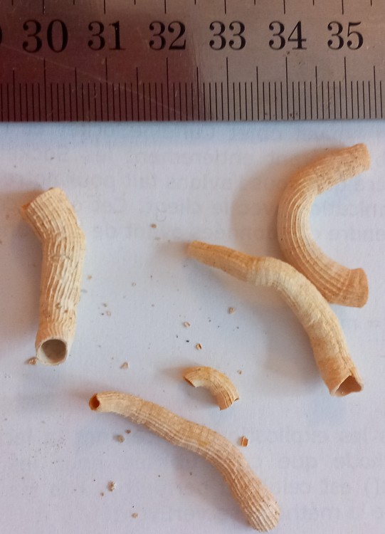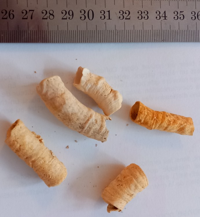 7. Bonjour, Voici 2 sortes de fossiles qui se ressemblent beaucoup. A nouveau je n'ai aucune information. Cela me fait penser à des terriers de vers, mais cela en est-il ? Merci à vous, Bonne soirée