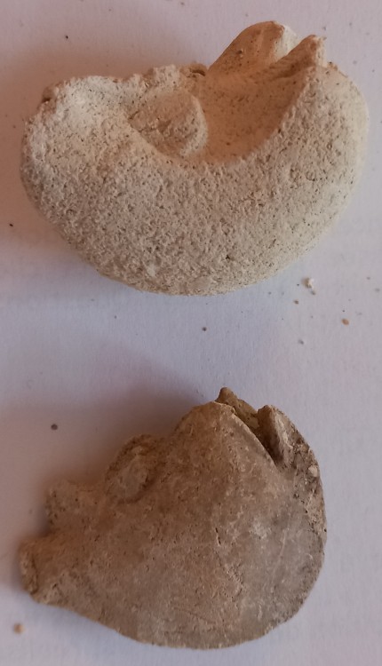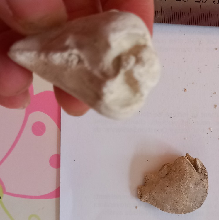 8. Bonjour, On m'a donné un lot de fossiles. Je ne les ai pas tous reconnus. Concernant ceux que je présente ici, je ne connais ni le lieu de provenance, ni l'ère géologique du sol. Si quelqu'un a une idée, je suis preneuse. Voici le n°1 : Il était noté "Vertébré" et rien d'autre. Il me fait penser à une tête de lapin. Quelqu'un le reconnait ? Merci, Bonne soirée