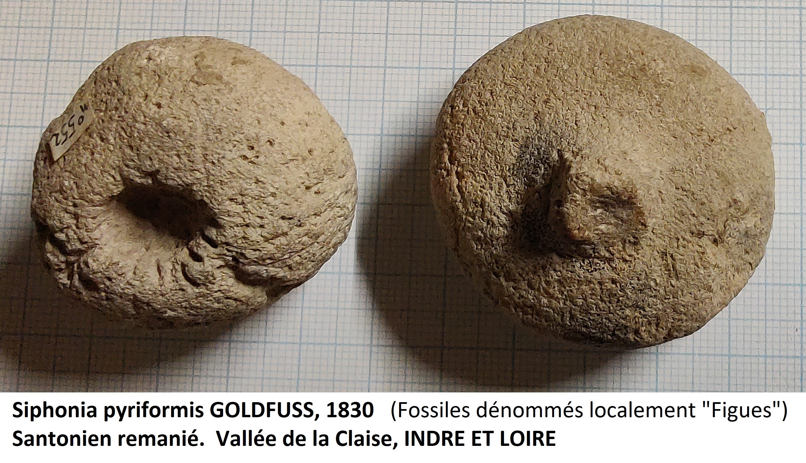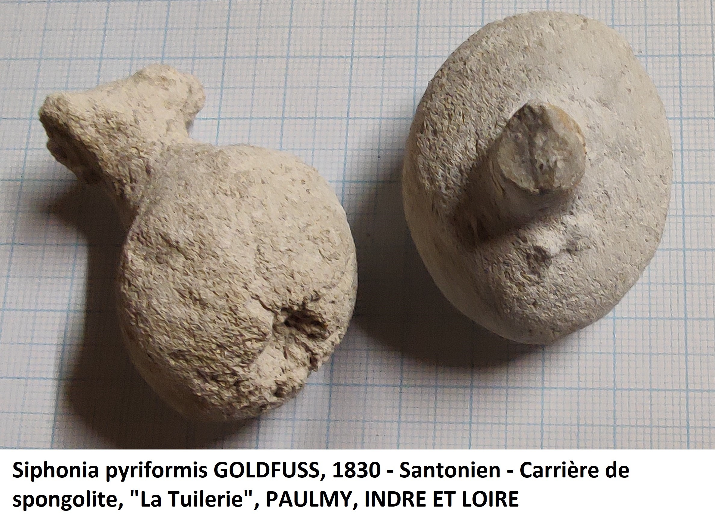 Quelques spongiaires de Touraine. Souvent un Santonien remanié dans les formations superficielles, mais en place pour le site de Paulmy. -