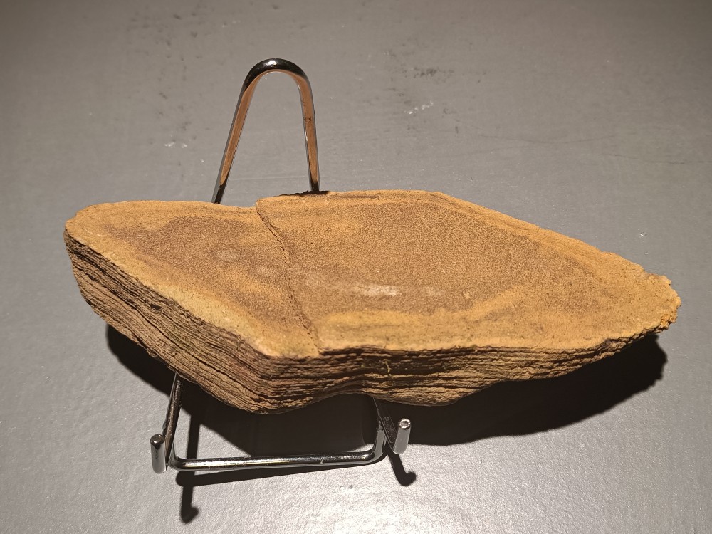 5. Les deux dernières photos,sont le même échantillon.Pour la partie rugeuse c'est un relief gris . Beige dans les sillons ,parsemé de ci de là ,de minuscules points brillants comme du quartz ou mica, vraiment comme la pointe d'une aiguille.