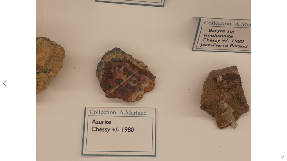 Salon de l'Arbresle, 45ième édition. Expo Chessy.pyroman a répondu à un sujet de pyroman dans Conférences, sorties, voyages, expositions,... Bonsoir, tout d'abord merci pour le reportage. En effet, le salon s'est très bien passé. Nous sommes très contents. J'ajouterai quelques photos ultérieurement de cette exposition. Les deux derniers clichés sont en effet de la collection Eric Asselborn. D'autres échantillons sont dilués dans les autres vitrines à mes côtés. Les échantillons venaient également des collections de LD Bayle, D Boel, P Clavel, A Martaud, JP Zajacz, F Lagoutière, F Fare, A Lafflutte, I Denis, JN Bererd, M Chapus, B Sec afin d'illustrer les différentes parties du gisement. Un très grand merci à tous les amis participants ayant répondu à mes sollicitations. C'est ce type de partage qui permet la réussite d'une présentation de ce type. RDV dans dix ans pour ce thème. Pyroman (option Chessyman)