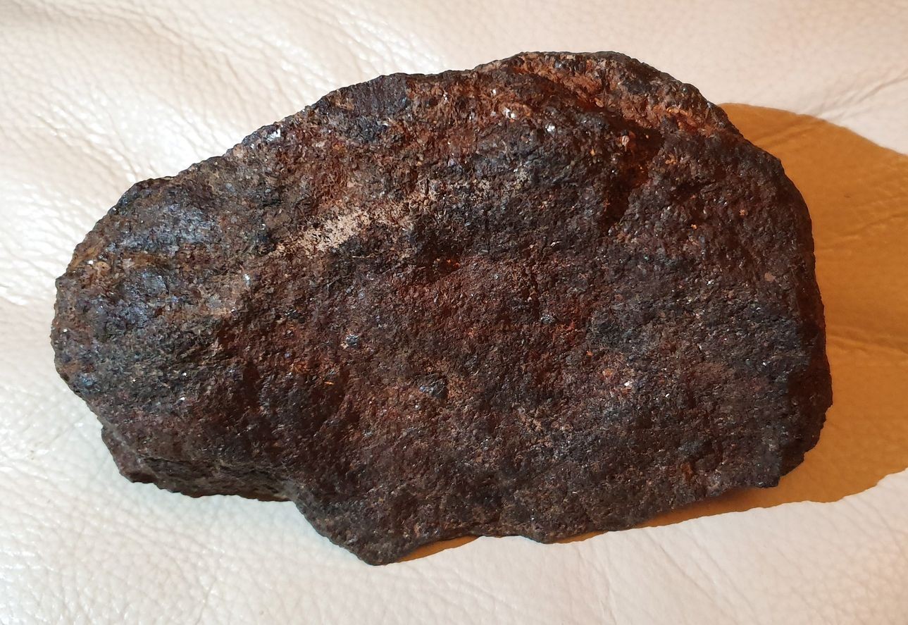 2. Bonjour. Je souhaiterais une identification de cette pierre que je suppose être une météorite. Elle pèse 1,8 kg, elle a une densité de 3,3, l'aimant reste bien collé et elle présente des microbilles bien régulières.