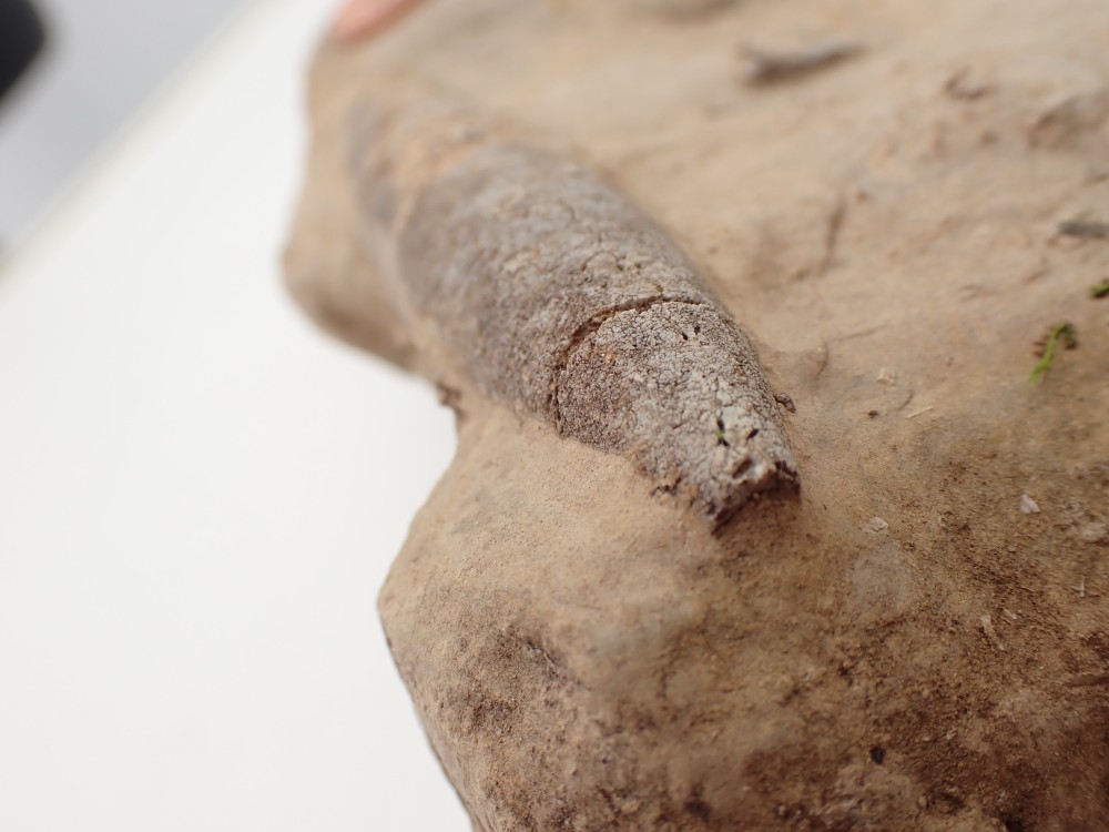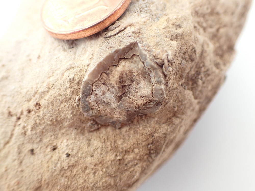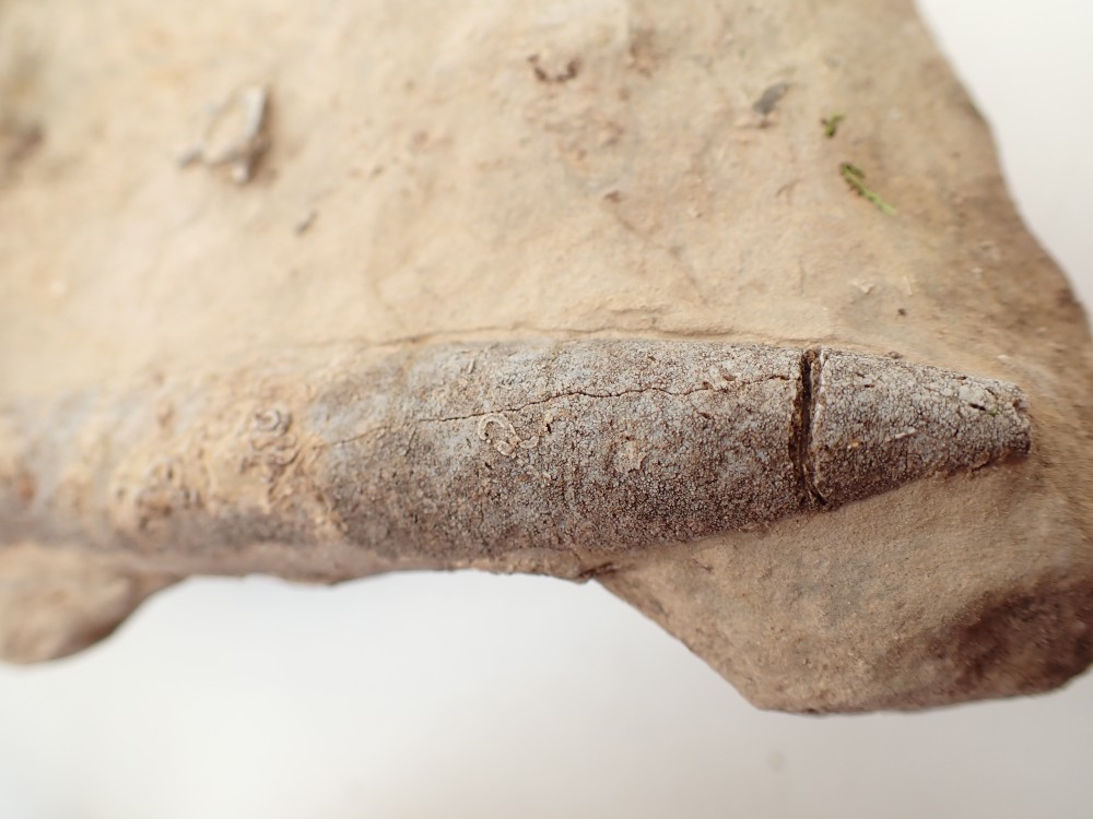 7. Teste HCL concluant sur la partie "blanche" je mens doutais un peu je pense calcaire ! mais négatif sur la partie "noir" Ce noir qui traverse " l anneau blanc" n ai pas la meme matière Petit coup de lame de scie Je ne vous pas trop de difference entre les 2 ????