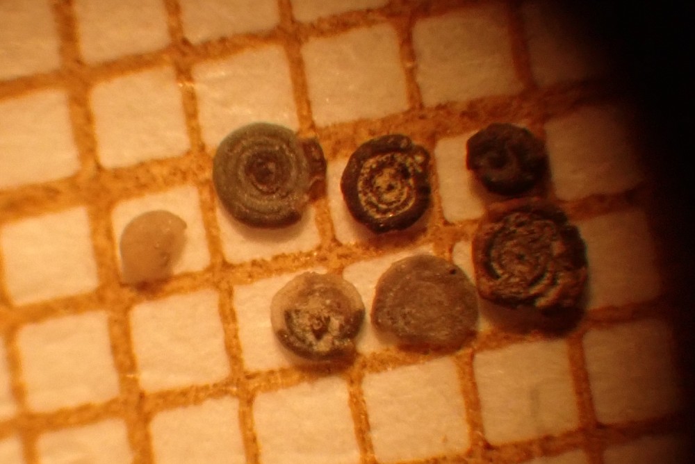18. Bonjour Jolie récolte Même constat pour les très petites entre 1 et 2 mn pour ma part ,elles ont des qualités de conservations bien meilleurs Je pense aussi quelles ont pu traverser les époques en subissant moi de contrainte physique au vu leurs petitesses . Pour les couleurs je penserais plus a leurs environnement au moment de la Diagénèse !!! Mais tous çà n est que mon interprétation ,de très nombreuses pistes sont a explorer.... Fred