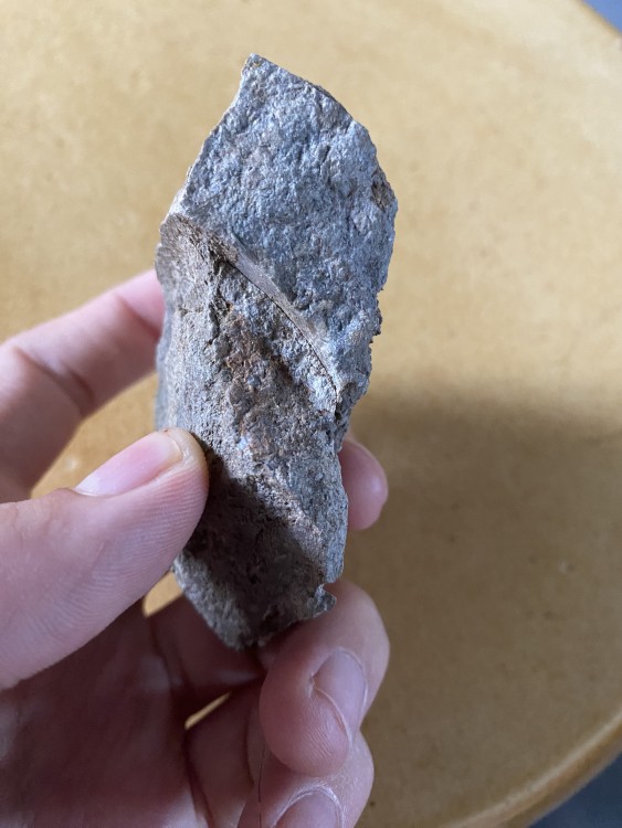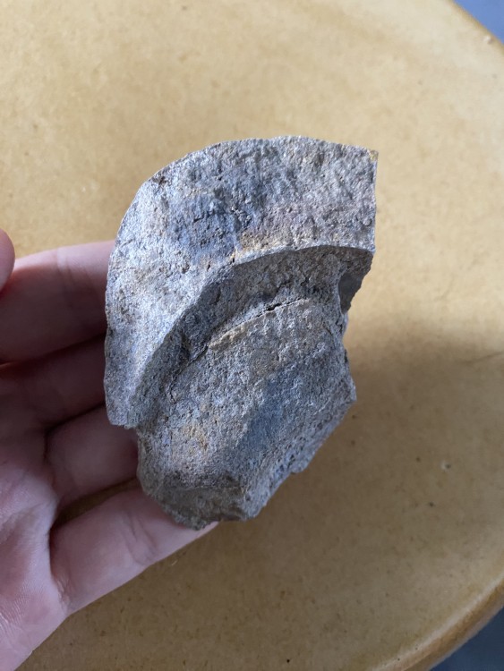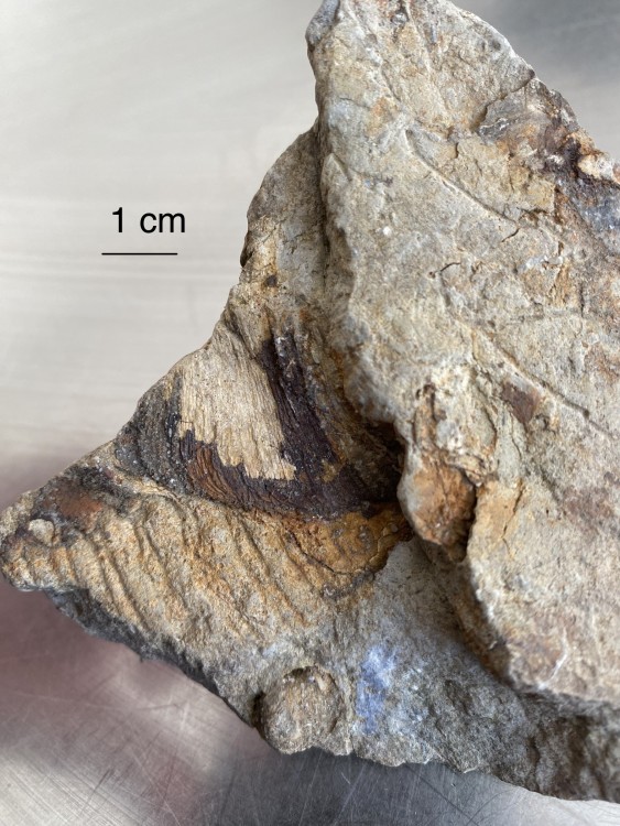 4. Oui, je parlais de la trace brune avec ce qui ressemble a des fibres. J’ajoute une deuxième photo qui est prise sur le bord(la surface arrondi correspond à la surface plane visible sur la première photo, et ça ne se voit pas ici mais des morceaux de coquilles sont visibles). Mais les deux semblent bien distincts(surface striée et « huîtres »).
