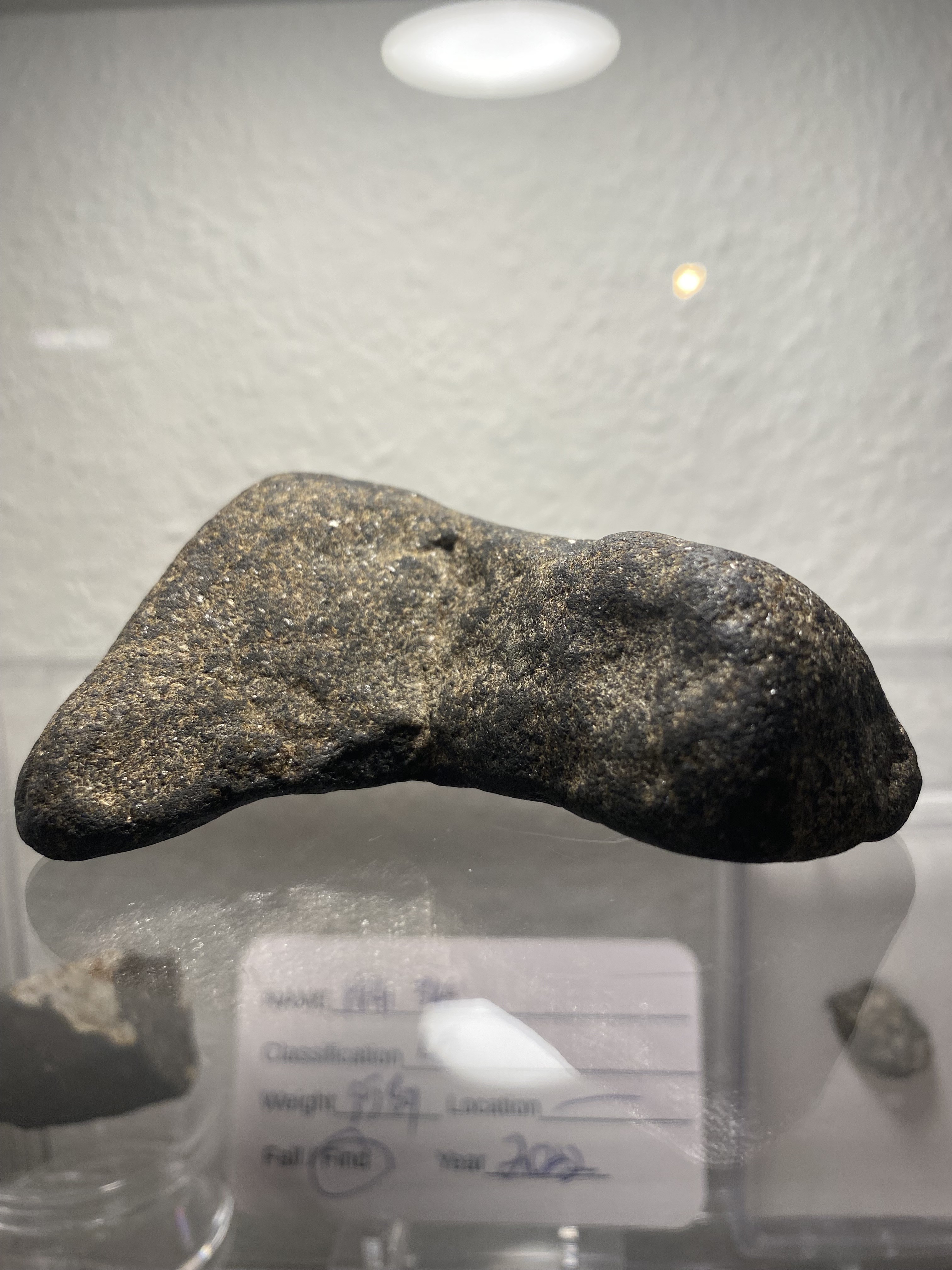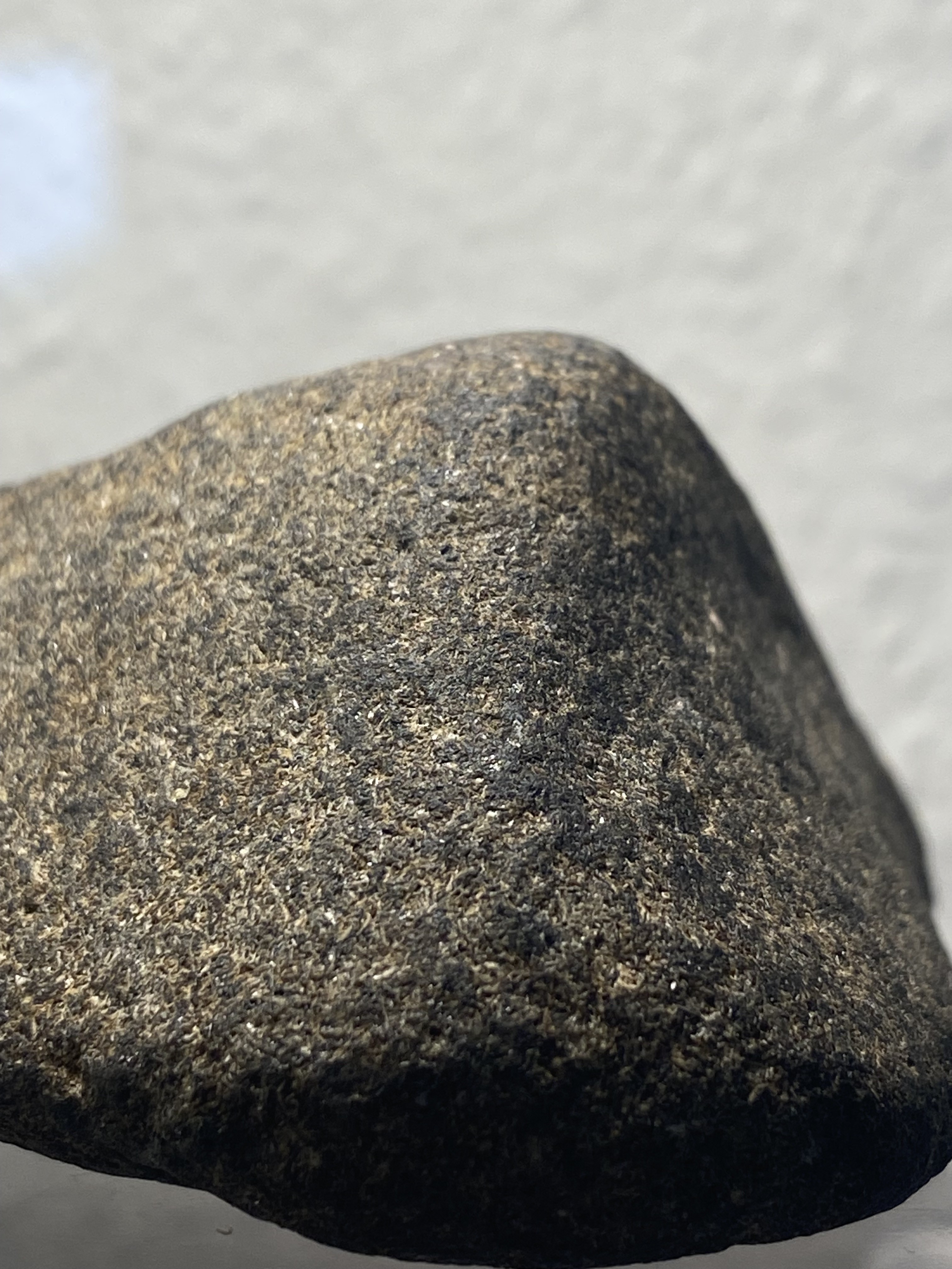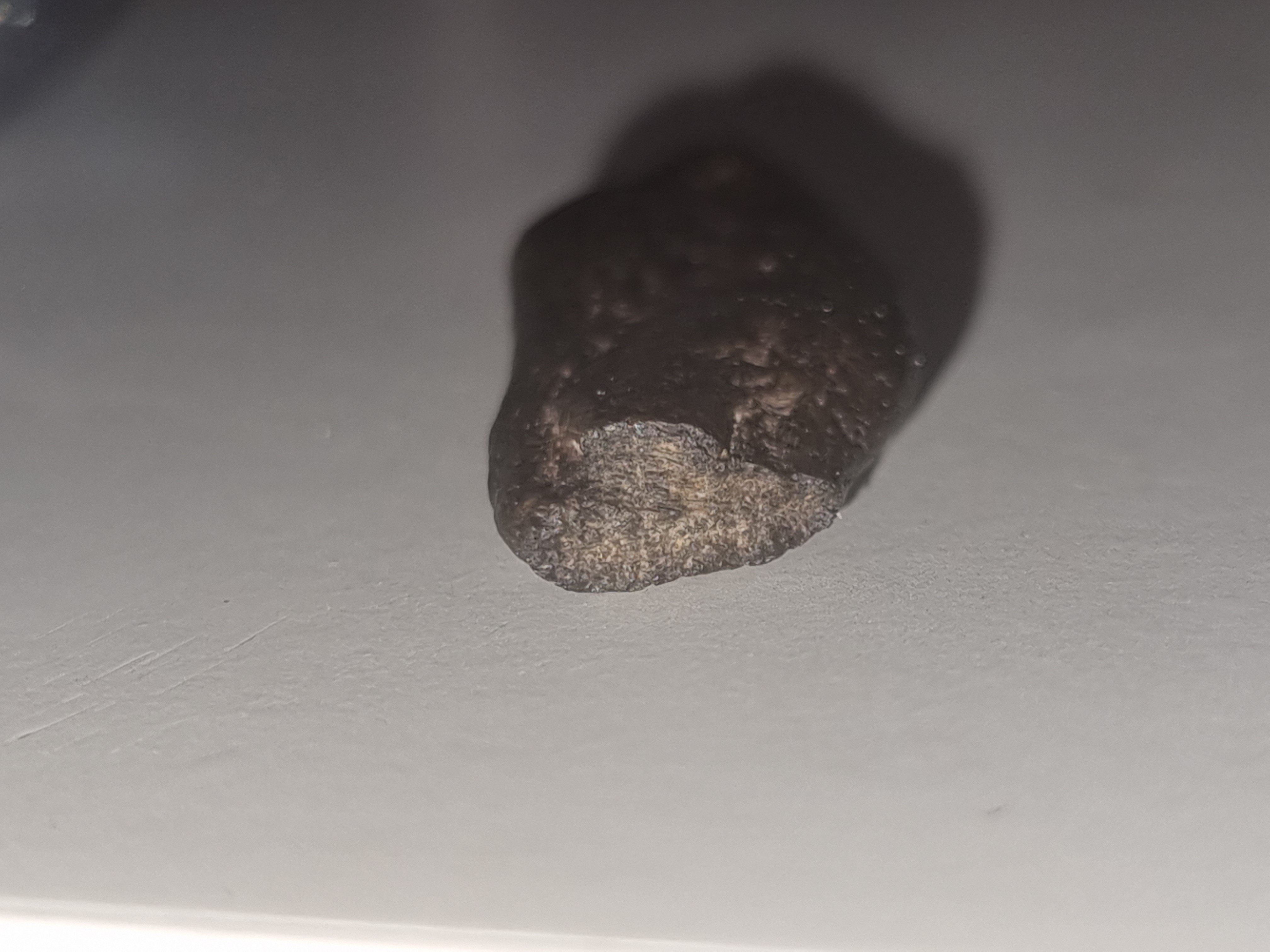 @icarealcyon et @ice tea Merci pour ta réponse rapide ! J’entends bien la piste du basalte à microlites de feldspath, c’est effectivement une possibilité. Cela dit, certains éléments m’interpellent et m’amènent à m’interroger davantage : La roche pèse 201 g pour environ 10 cm, ce qui semble assez dense pour un simple basalte. Elle attire un aimant néodyme de façon nette sur toute sa surface, alors qu’un basalte classique n’est pas toujours aussi fortement magnétique. À la surface, on observe des cristaux en baguettes (style mikado) répartis de manière homogène sur toute la roche, avec aucune orientation préférentielle, ce qui semble assez particulier pour un basalte. Certaines zones montrent de l’irisation bleutée sur un fond noir vitreux (ressemblant à du verre fracturé), visibles à la loupe, un aspect qui évoque une fusion ou un choc thermique. Il n’y a pas de bulles visibles (ou très rares), ce qui tranche avec beaucoup de basaltes. La forme très particulière de la roche, presque comme une sculpture naturelle, avec un angle net et une face plate douce au toucher, m’a aussi intrigué. Je suis bien sûr ouvert à l’idée que ce soit une roche terrestre altérée, mais avec tous ces éléments réunis, je me demandais s’il ne pouvait pas y avoir une autre piste à explorer (impactite, roche magmatique particulière, ou autre). Merci d’avance si d’autres veulent donner leur avis ou m’aider à creuser un peu plus ! -