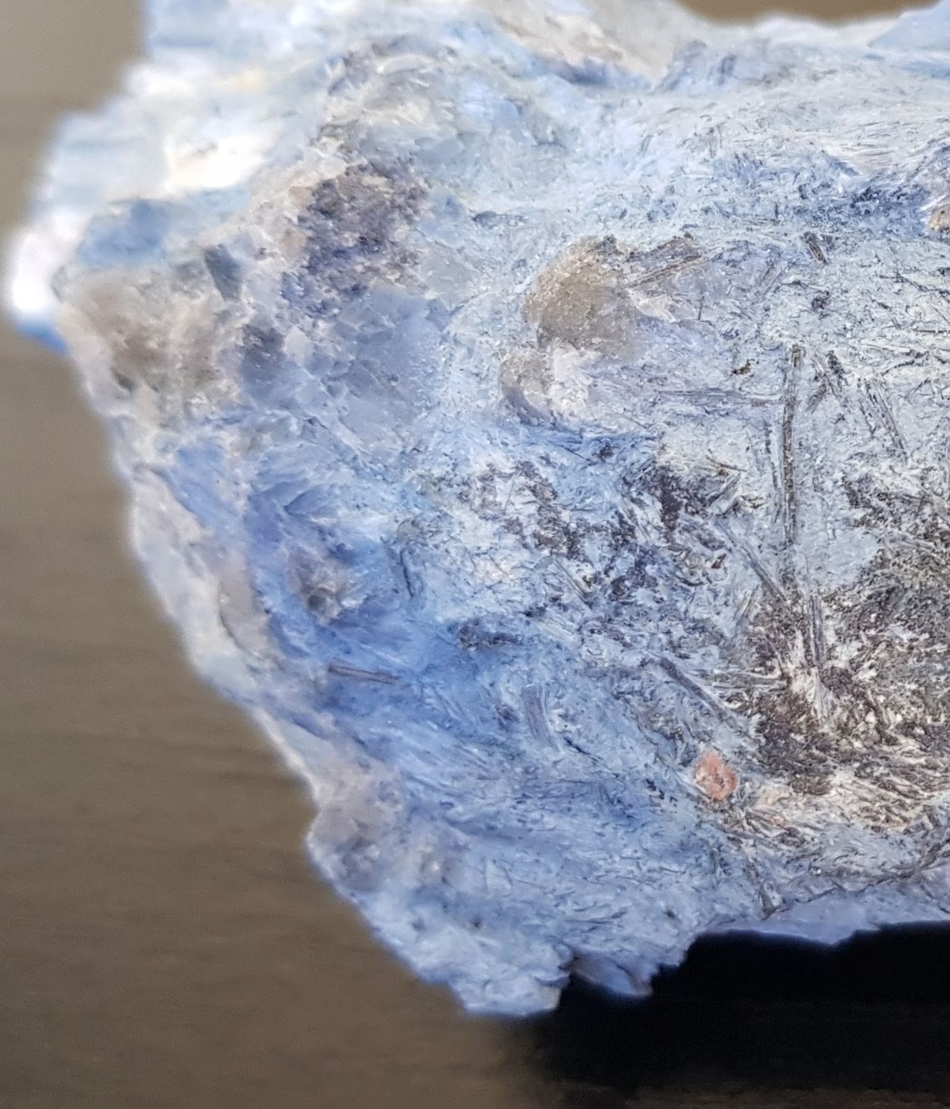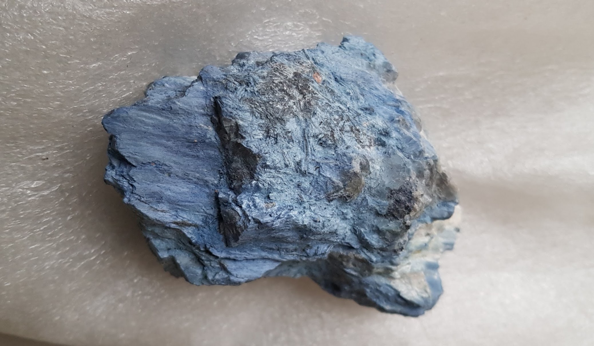 4. Bonjour à tous. En cette rentrée et parmi le lot de cailloux sortis du carton et que je n'ai pas pu identifier il y a ce minéral. Couleur bleue dominante (mon smartphone ne restitue pas exactement la teinte :-)) Aspect: assez irrégulier, crayeux. Dureté : faible, friable >> se raye avec l'ongle et colore le doigt en frottant. Provenance : France très probablement comme le reste du lot Merci par avance de vos réponses si vous avez une piste avec ces quelques photos Pat / Kamston