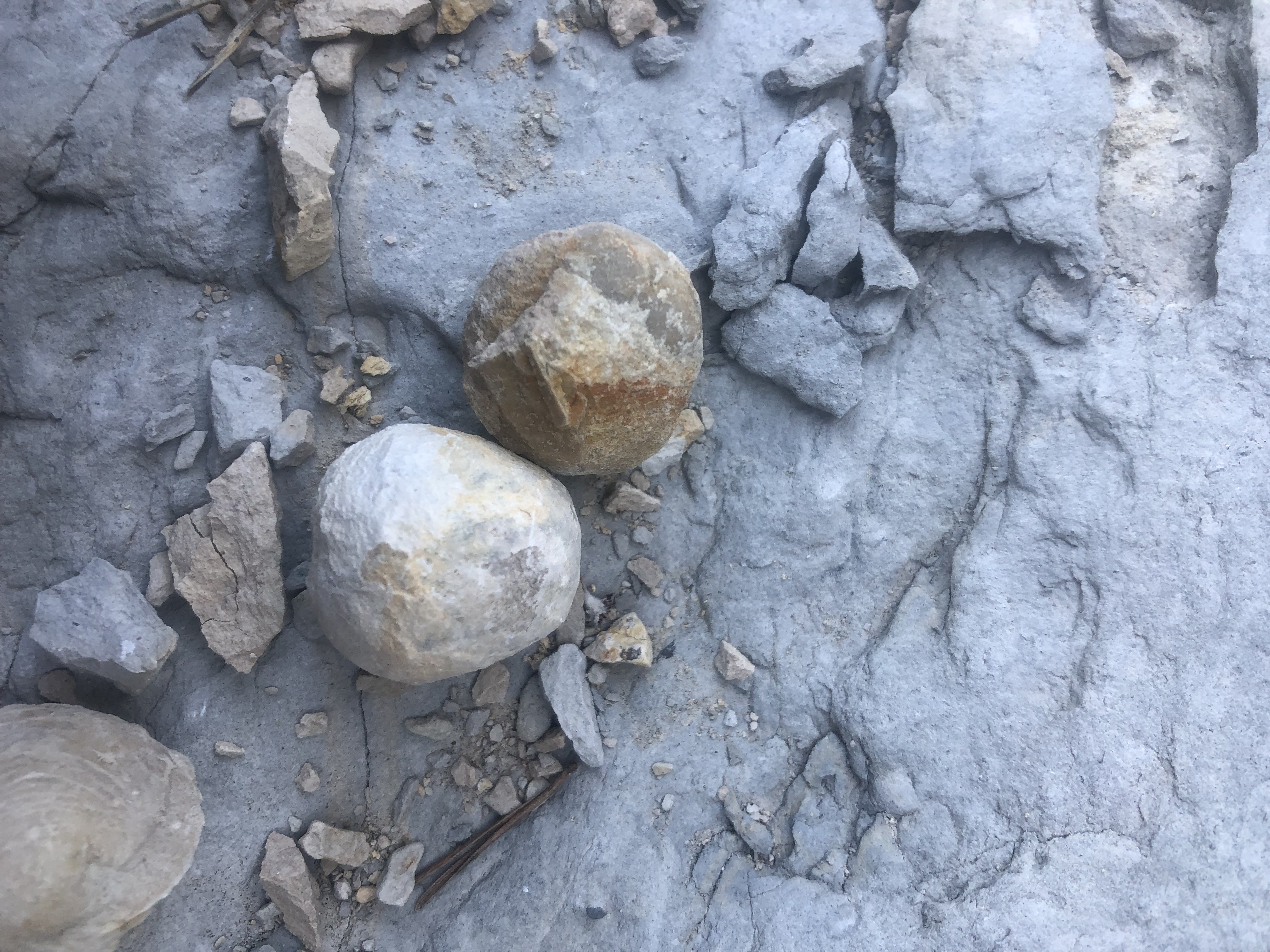 Bonsoir à tous, Observation rapide dans le Lubéron sur les hauteurs. Je n'ai rien emporté, étant dans une réserve géologique. Néanmoins je suis curieux de savoir quels sont ces animaux. Leur forme ronde contraste avec les sédiments déchiquetés tout anguleux dans lesquels on les trouve. Il y a présence d'un lobe gauche et d'un lobe droit même si les photos ne le représentent pas autant que dans la réalité. C'est plus visible sur le dernier exemplaire qui semple être de la même espèce mais plus gros.