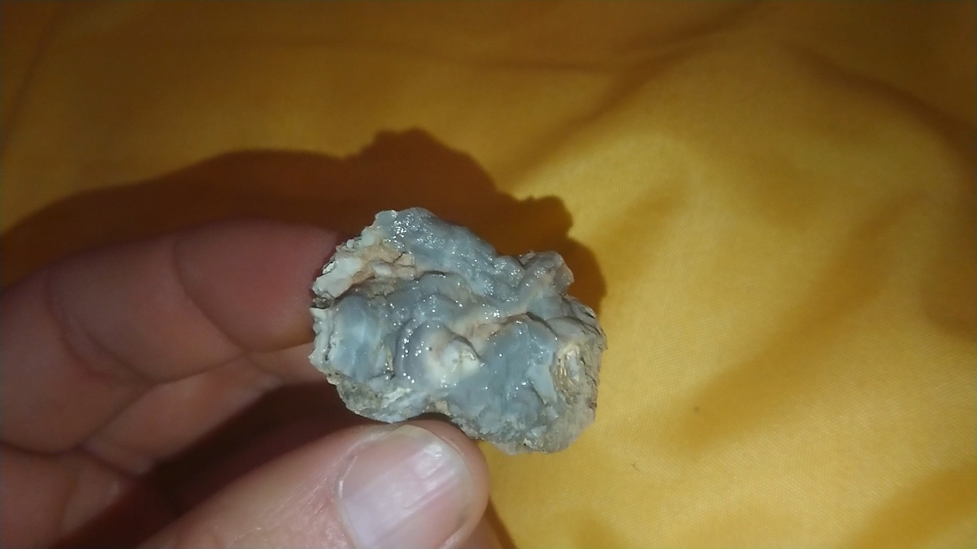 Pour la couche bleue ciel, blanche non nettoyée et sèche je pense à du cristal de roche sorti du gypse mais là c'est une colle pour moi.