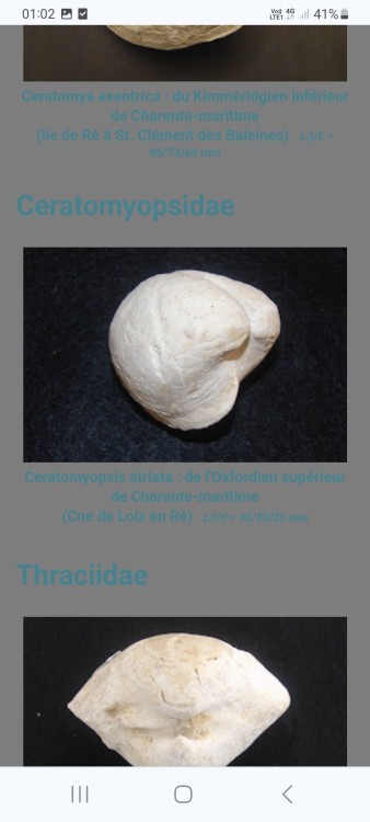 Je vous remercie pour vos réponses. Effectivement, je me rends compte à quel point Il est difficile de déterminer un fossile sans connaître sa provenance exacte. Maintenant je comprends beaucoup mieux votre exigence. J'ai trouvé ces deux photos où on voit les moules un interne et externe en même temps (ici porambonite). On y voit bien la fossette et le petit liseré sur le moule interne !!! J'ai trouvé l'exemple très intéressant.