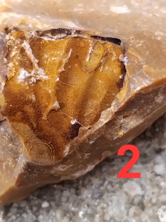 Merci pour la réponse Pour le 4, ce qui m'intrigue, ce sont les stries autour de l'empreinte. Ça faisait une cavité dans le nodule avec une empreinte négative lisse. -