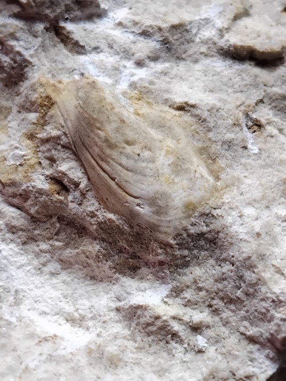 Malheureusement je n'ai pas beaucoup d'informations à vous donner. Ça provient probablement d'une zone céréalière du grand ouest... La roche raye facilement le verre et ne réagit pas à acide. Est-ce que ce serait plausible pour le genre Arca ???