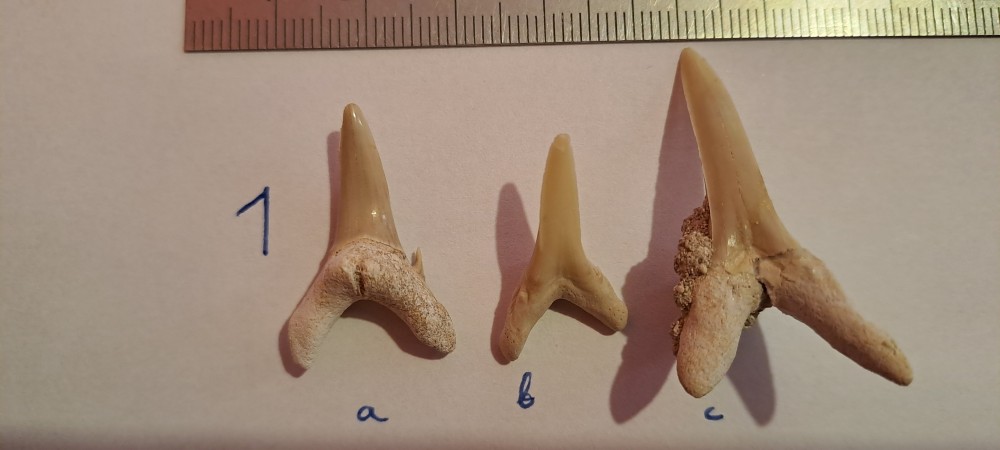 Pour le lot numéro 1, je pensais à Odontaspis hopei de l'Yprésien ou une autre espèce du même genre (il est difficile de différencier les différentes espèces du genre Odontaspis).
